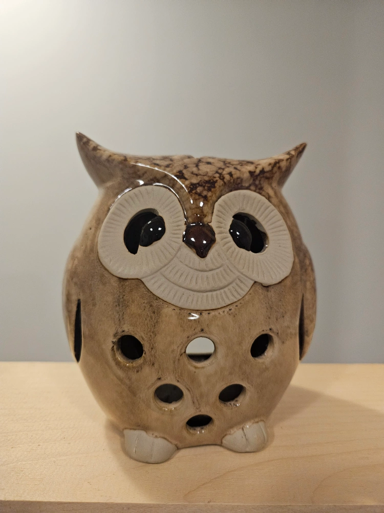 This adorable owl candle holder is perfect for adding a touch of whimsy to your home decor! It's in great shape and ready to bring some cozy vibes to your space