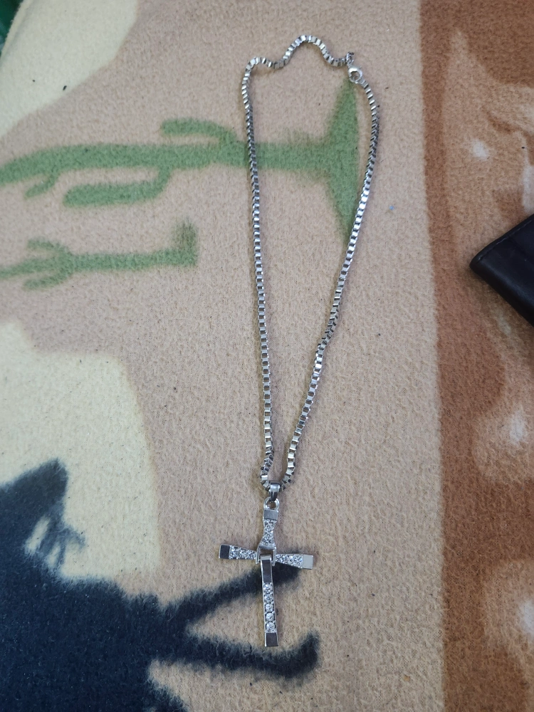 A simple cross pendant necklace! The chain is a box style. It has some stones in the cross pendant