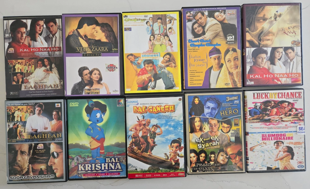 giving away a collection of Bollywood DVDs, including titles like Kal Ho Naa Ho, Veer-Zaara, and Baghban. Also includes Bal Ganesha, Bal Krishna, and Slumdog Millionaire. Great for any Bollywood movie enthusiast! free