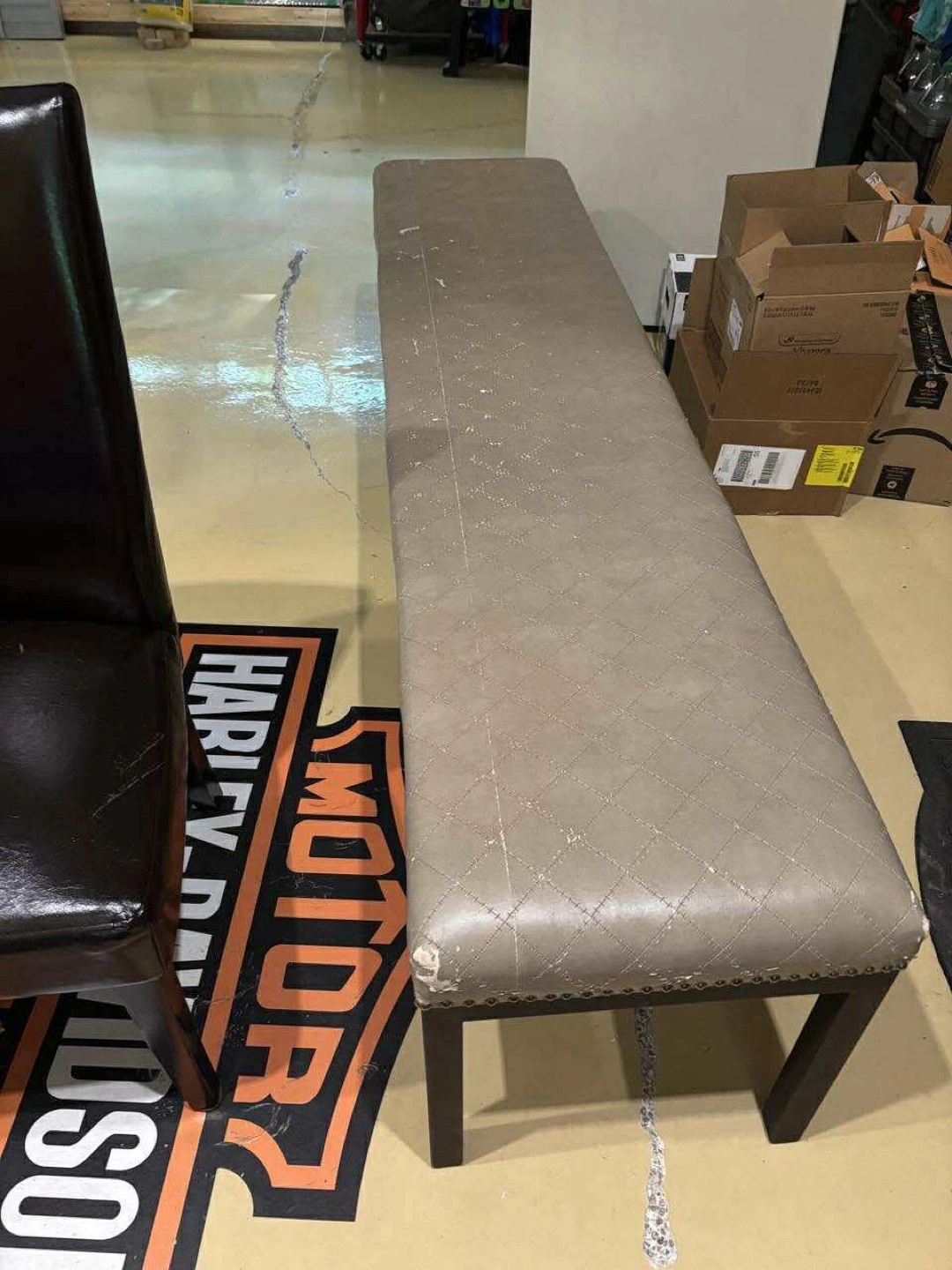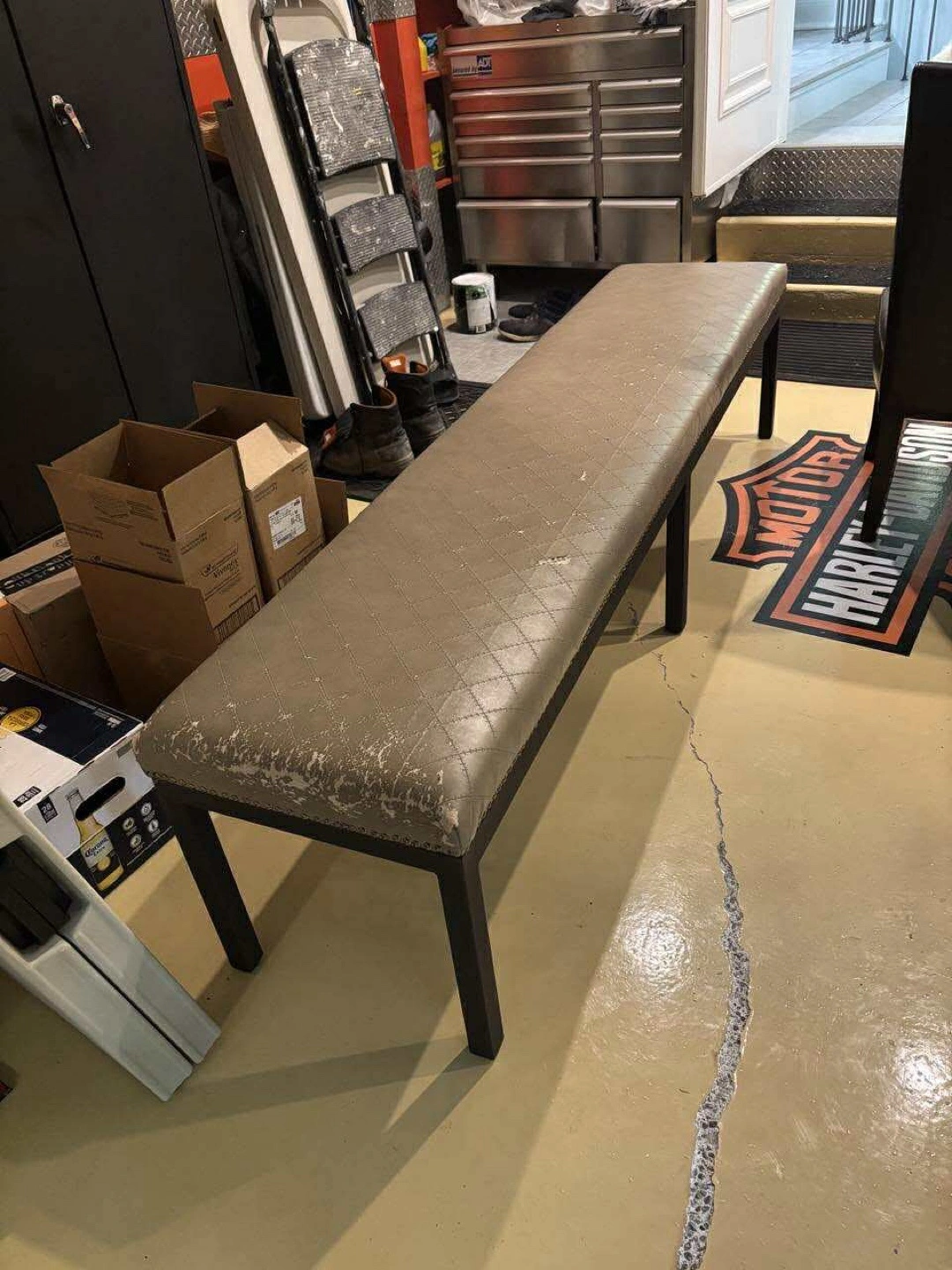 Selling a used upholstered bench. It's in good condition, perfect for adding extra seating to your dining area or entryway. The upholstery has some wear and tear, but it's still a functional and stylish piece of furniture