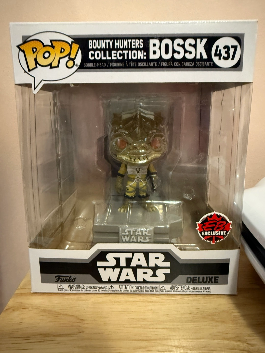 Selling a Funko Pop! Star Wars Deluxe figure of Bossk from the Bounty Hunters Collection. It's number 437 and is an EB Games exclusive. This bobble-head figurine is still in its original packaging!