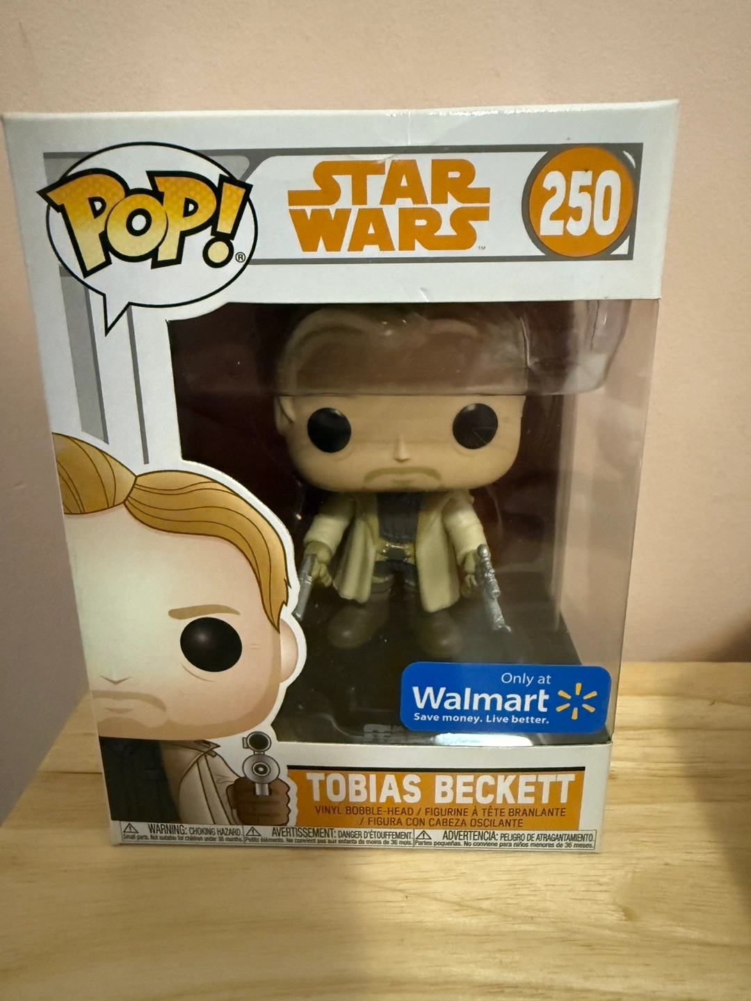 Selling a Funko Pop! Star Wars figure of Tobias Beckett, number 250! It's in great condition and comes in its original box. A cool collectible for any Star Wars fan!