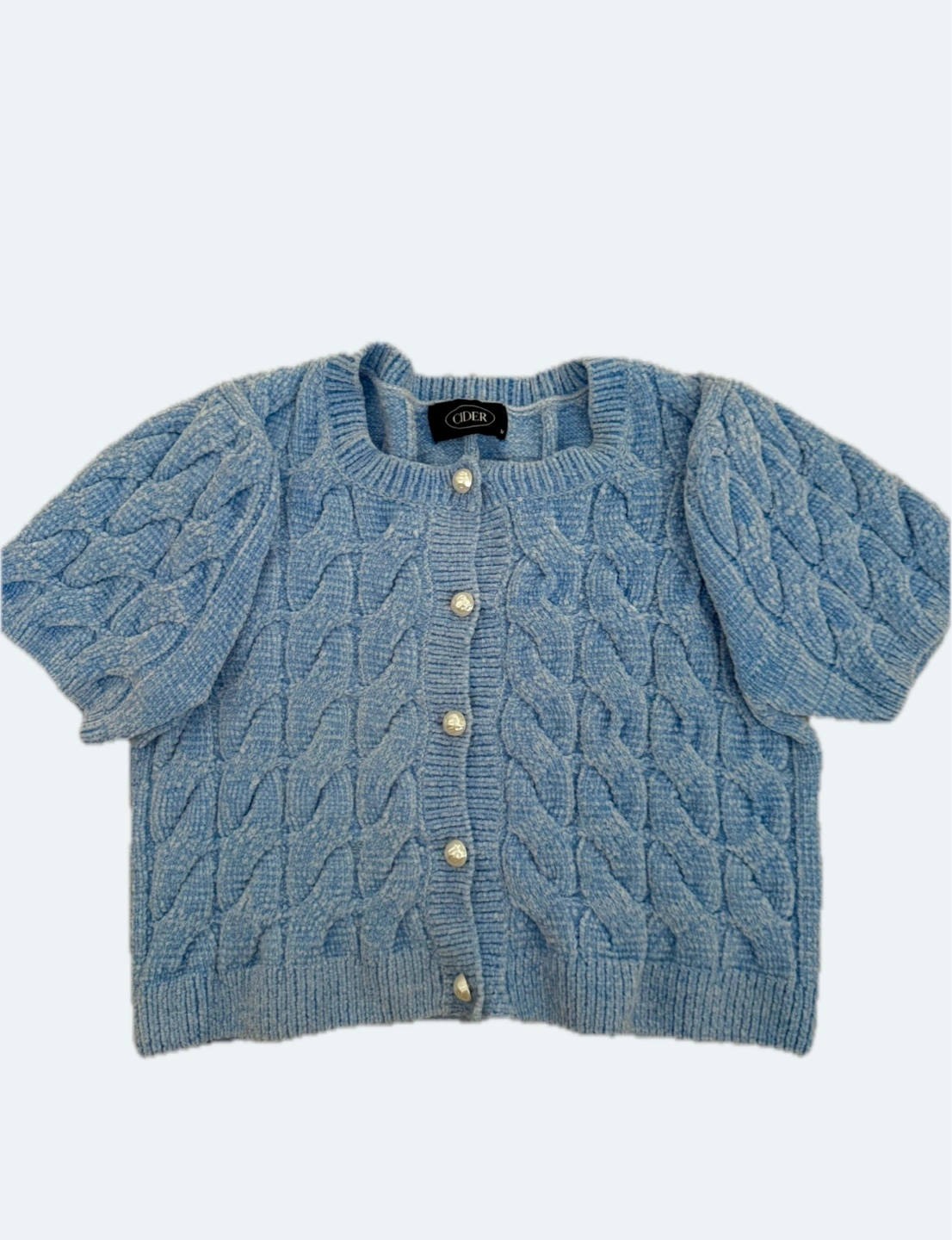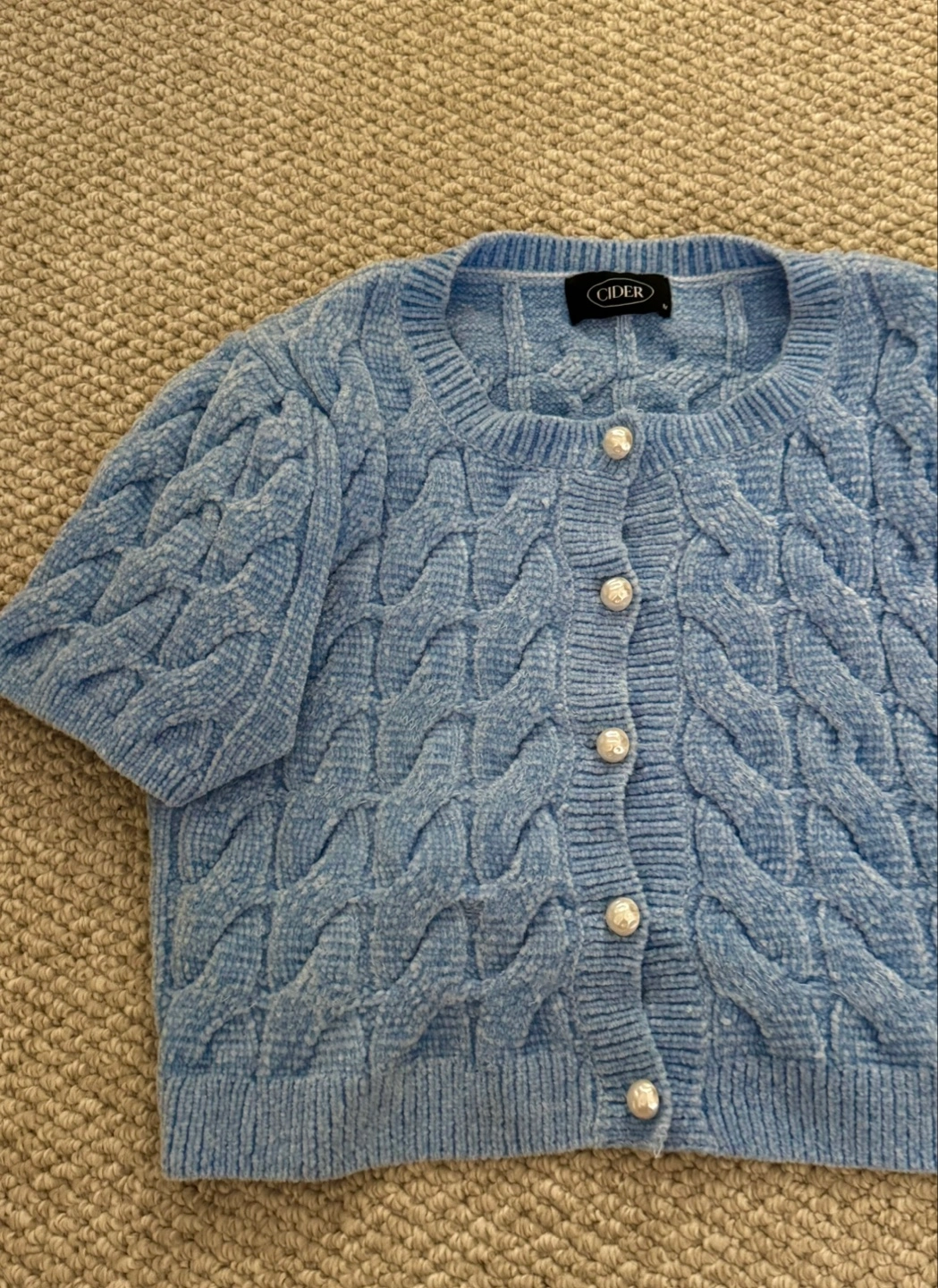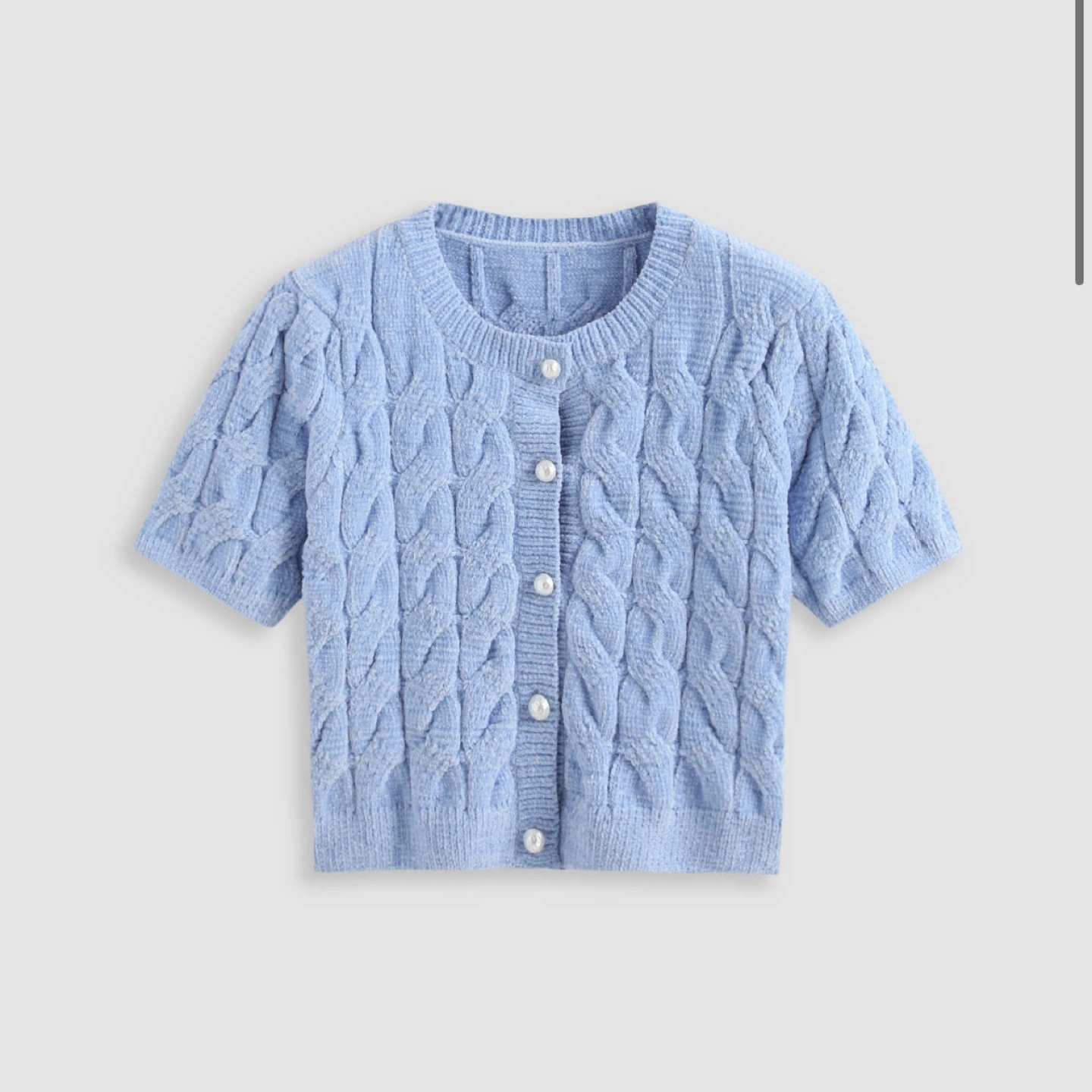 🧡Cute blue knit cardigan from Shop Cider 💙In great condition and features a unique cable knit design with pearl-like buttons 💙Size US M