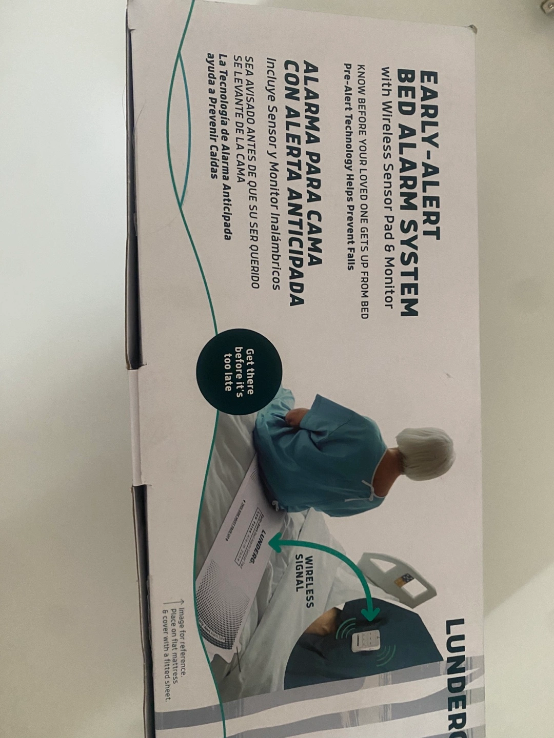 Selling a brand new Lunderg Early-Alert Bed Alarm System with Wireless Sensor Pad & Monitor. This system helps prevent falls by alerting when a loved one gets up from bed. It includes the sensor and monitor, and the box is included!