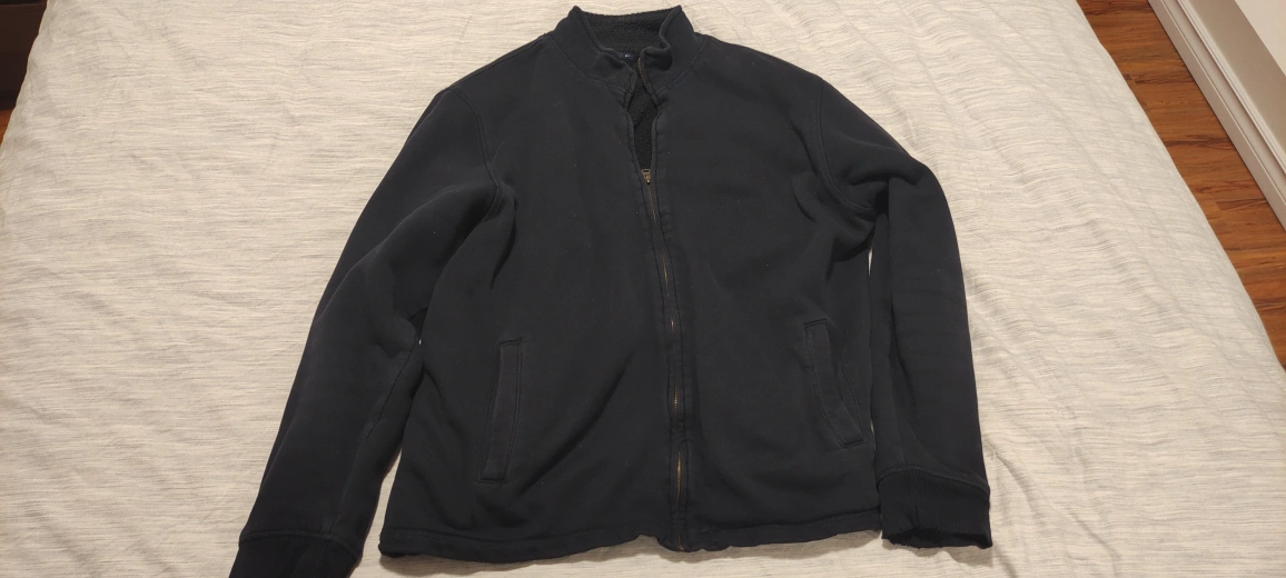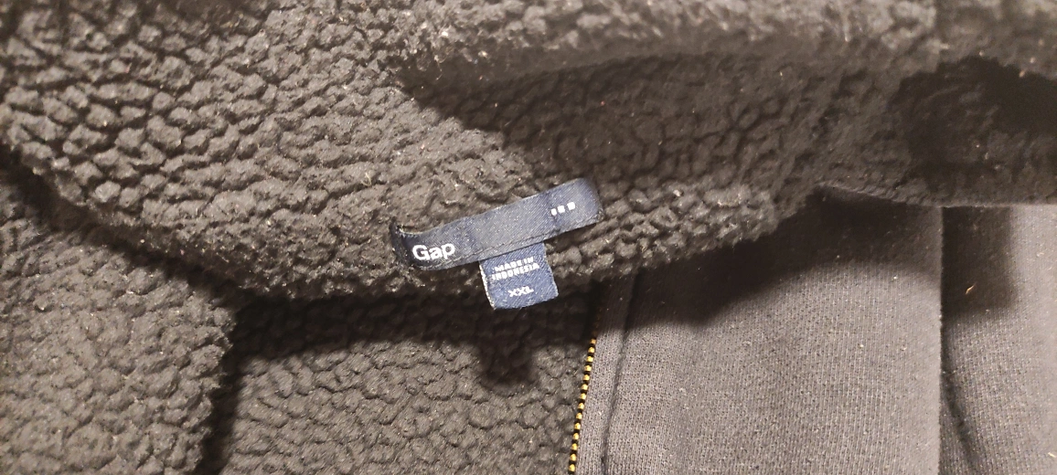 Cozy up with this Gap sherpa-lined zip jacket in size XXL! It's a comfy and warm jacket, perfect for layering during the cooler months. The jacket features a full zip closure and a soft sherpa lining for extra warmth. Fits like an XL
