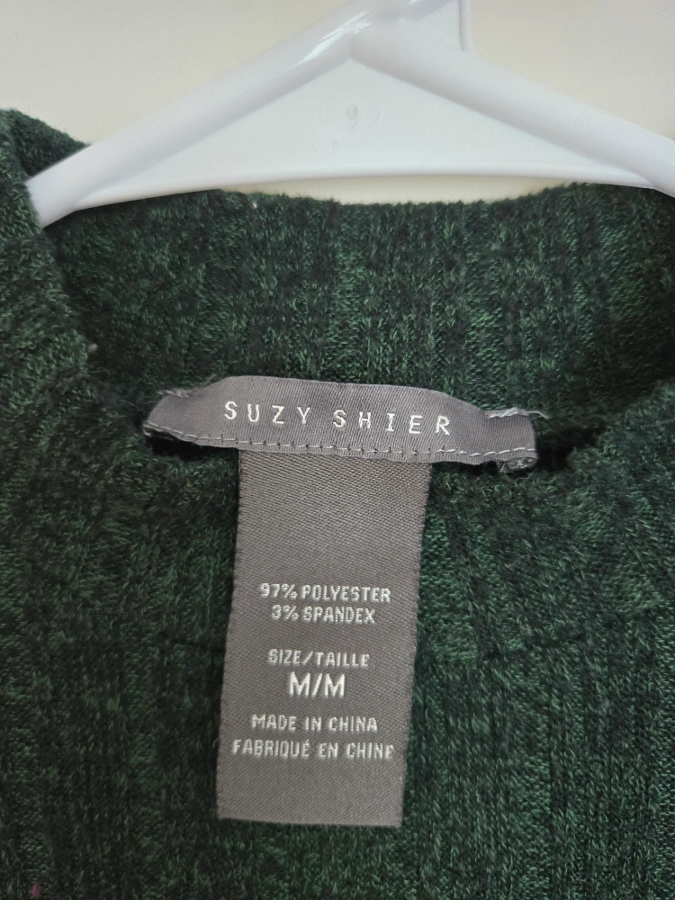 Green top from Suzy Shier! It's a size M/M and made of 97% polyester and 3% spandex. It's in great condition Pick up by Bathurst and Bloor