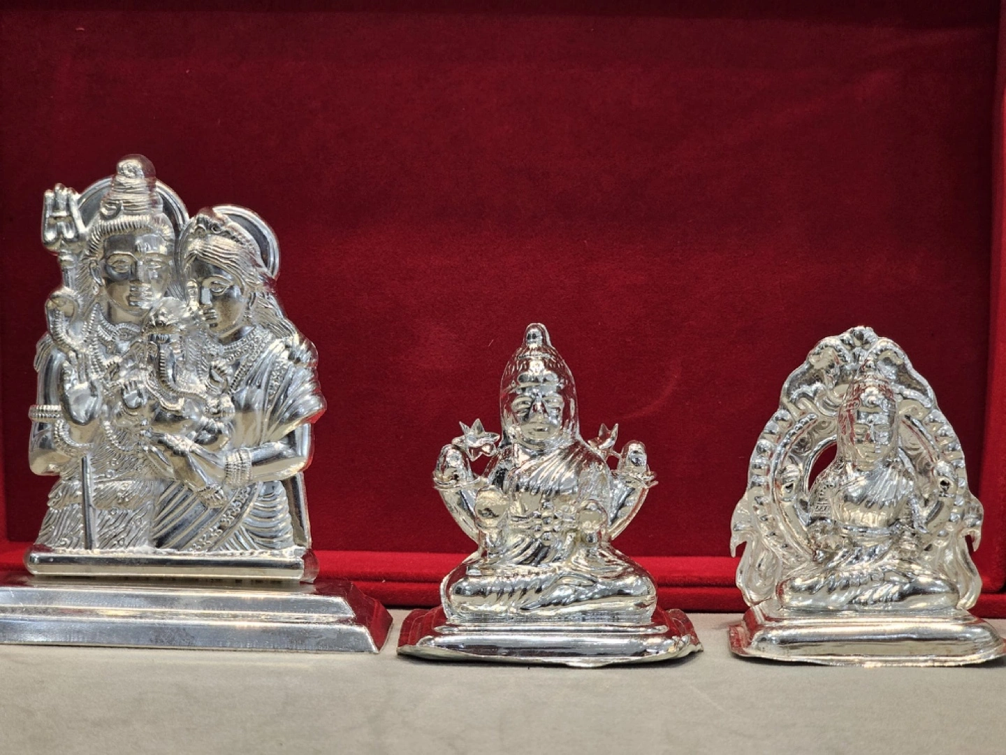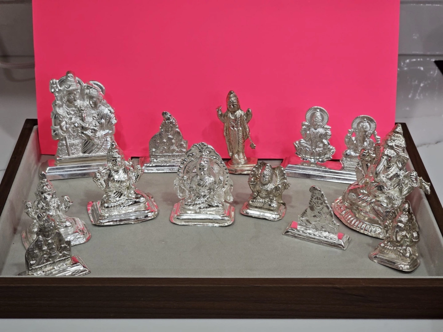 Selling a collection of silver-coloured Hindu god statues. These statues would be great for home decor or religious purposes. They appear to be in good condition. I have all silver jewelry in 925 pure quality Price depends upon weight and quality 5145708102 you can send message or can call me