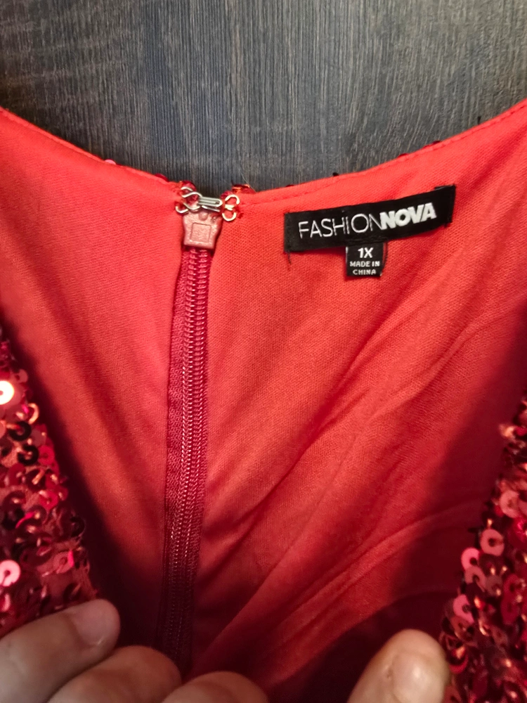 Check out this stunning red sequin dress from Fashion Nova! It's a size 1X and features a beautiful sequin design that's sure to turn heads. Perfect for a night out or a special occasion!