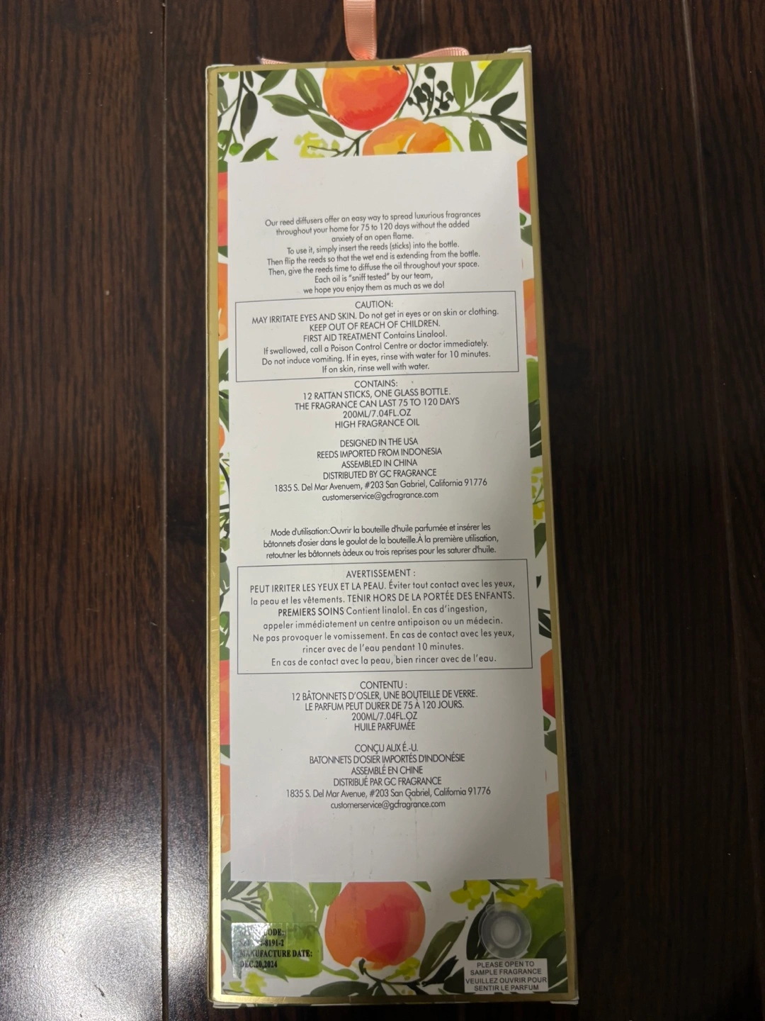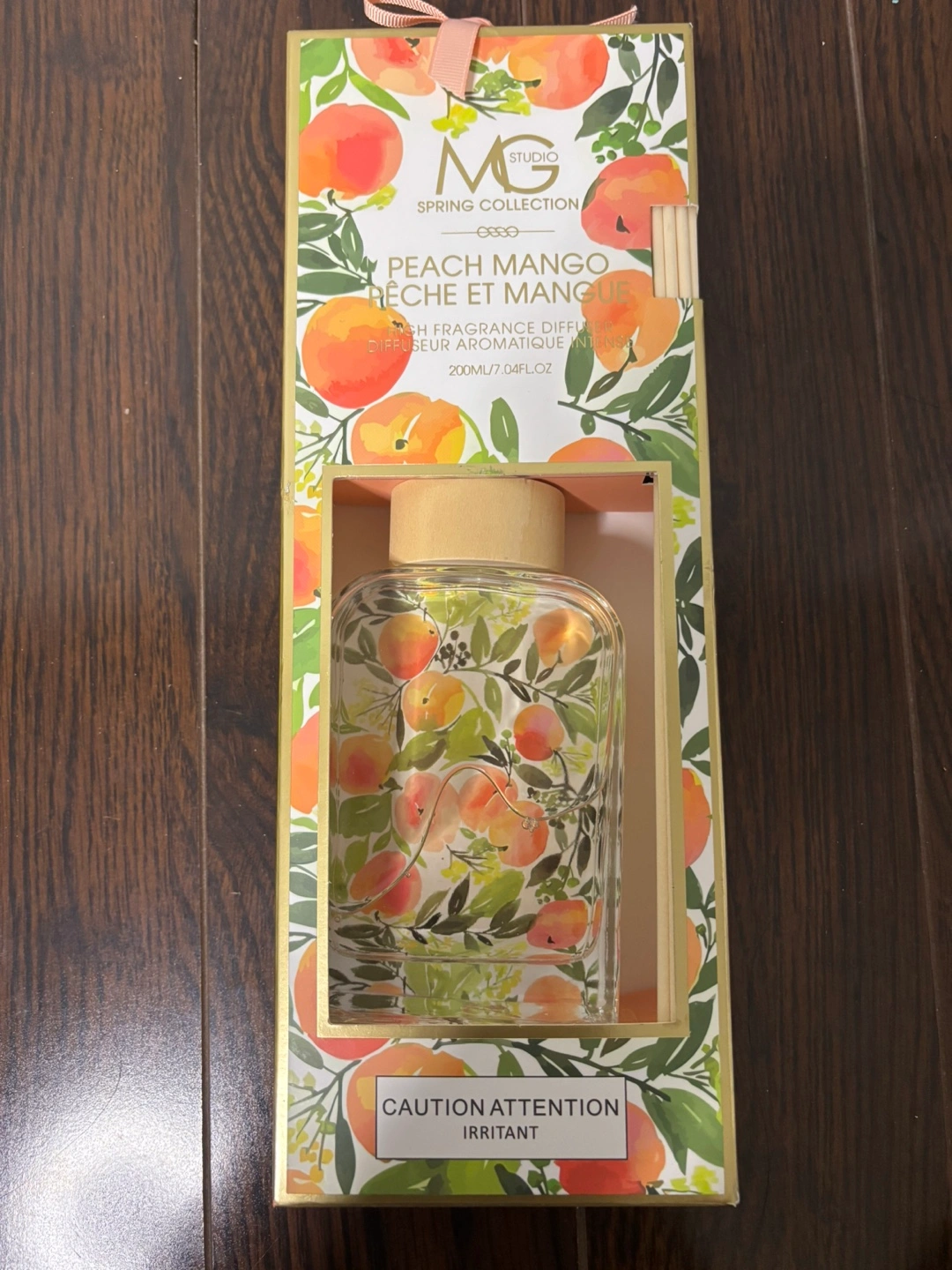 Freshen up your space with this M Studio Spring Collection reed diffuser in Peach Mango! The box includes 12 rattan sticks and a glass bottle containing 200mL/7.04FL OZ of fragrance oil. The scent is designed to last up to 120 days. Perfect for adding a touch of spring to any room