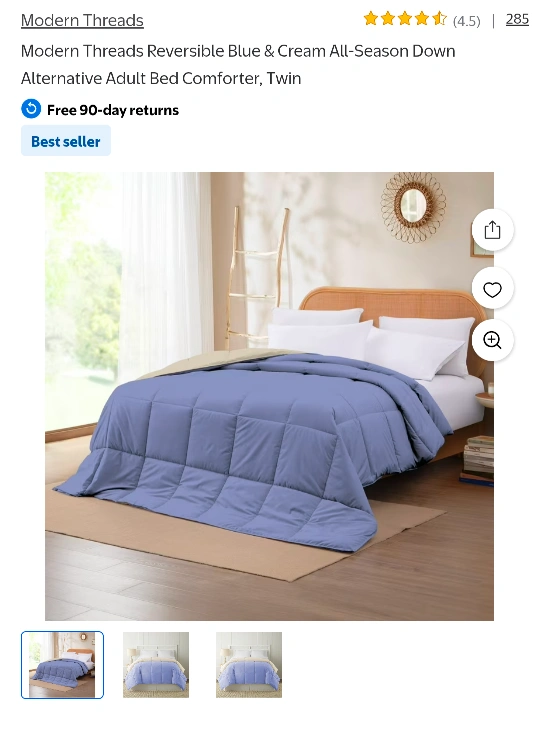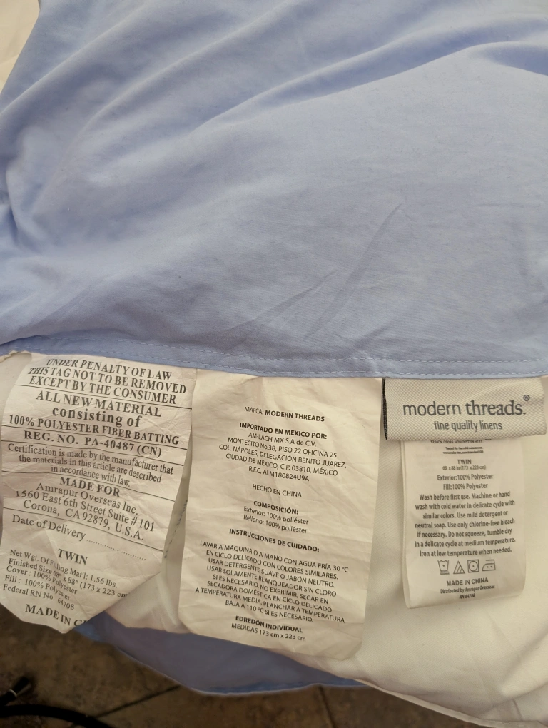 Selling a Modern Threads twin comforter in excellent condition. It's made of 100% polyester, both the cover and the fill. The finished size is 68 x 88 inches (173 x 223 cm). It's machine washable in cold water on a delicate cycle and can be tumble dried on medium heat. Super comfy! Want a simple way to revamp your bedroom décor The Pacific Coast Textiles Adult Down Alternative Reversible Comforter is Hypoallergenic, crafted from super soft microfiber and contains a 100% all-polyester fill that will provide endless comfort. Choose the color combinations you love the best and get ready to climb into a soft, warm bed! Suggested for all-season use and machine washing is recommended.
