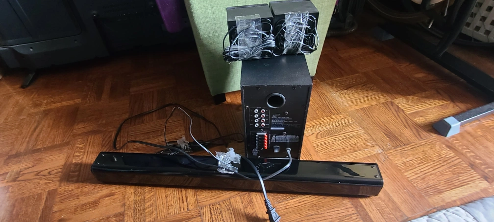 Selling an iLive HTB139B home theatre system. It includes a soundbar, subwoofer, and two satellite speakers. A remote control is also included. This system is perfect for enhancing your home entertainment experience! Pick up by Gerrard and River St address given once meetup is set