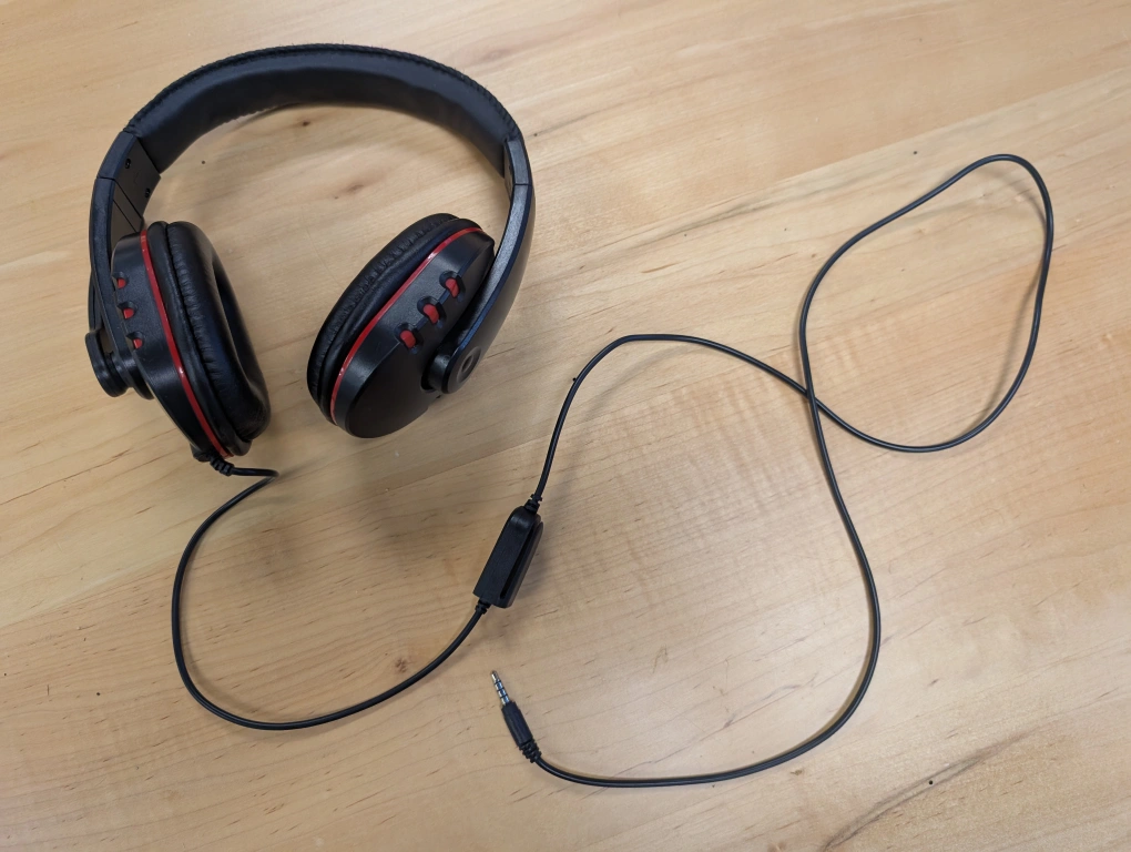 Selling a pair of Zero ZR-1000 wired headphones in black with red accents. They include a volume control on the cord. Good condition and sound quality.