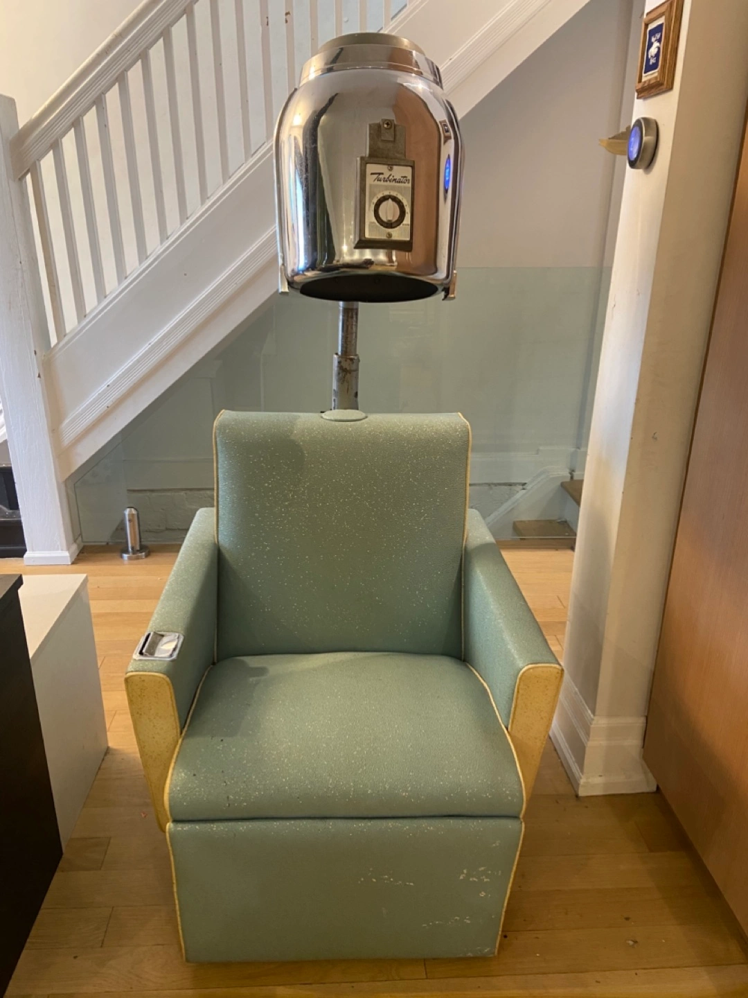 Selling a vintage Turbinator salon hair dryer chair. It has a unique retro look! It comes with a foot rest and a built-in ashtray on the arm. Extremely comfortable and the most fun reading chair/conversation piece. In perfect working condition. Broadview and Danforth.