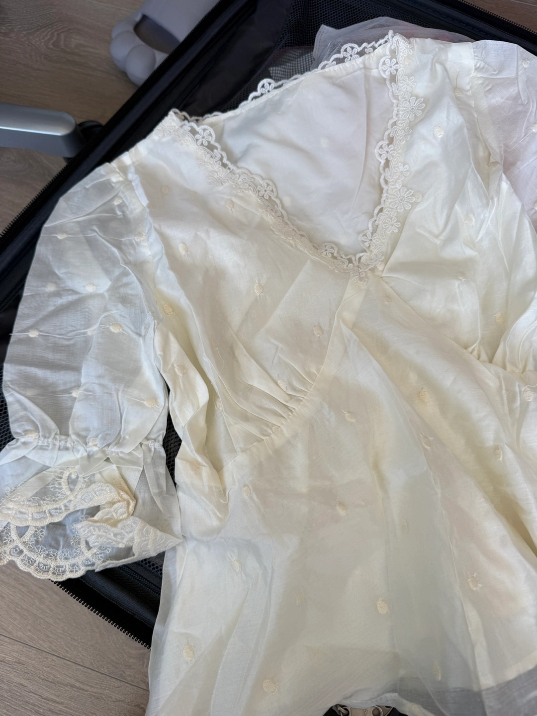 Selling a cream-coloured blouse with delicate lace trim. It's new and ready for a new home! Dt queen st pickup only