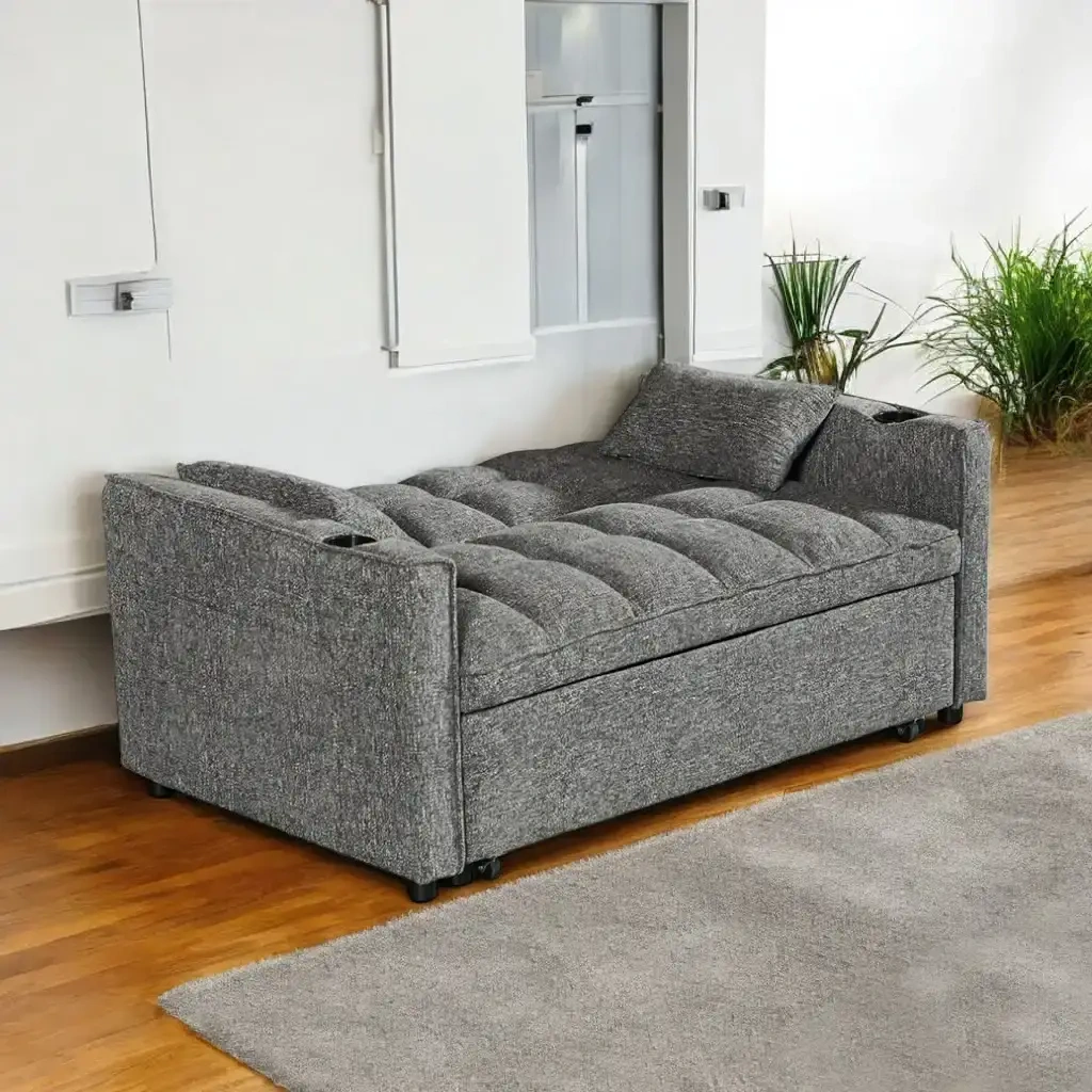 we sell Pullout Bed, Sleeper couches, dining tables, kitchen tables, dinette sets, bedroom sets, single beds, futon, sofabed, sectional beds, sleeper couches, bunk beds, recliner sets, leather sofas, table lamps, pull out bed, sleeper sofa, twin bed mattresses, roll mattresses, memory foam mattresses, queen bed frame, metal bed frames, accent chairs, coffee tables, end tables, night tables, console table, sofa tables dining chairs, wooden tables, king bed frame kids bed children’s furniture, floor lamp, wall art, paintings, rugs, etc…… Aspire Fabric Upholstered Sofa Bed With Built-In USB Charging Ports - Grey Fabric Upholstery Built-in USB Ports and Cup Holders Ultra Comfortable Storage Pockets Accent Pillows Included Dimensions (W x H x D): Open: 56" x 30'' x 70'' (Approximately) Closed: 56" x 30'' x 33'' (Approximately) Cod Available Order From Our WEBSITE and Get It Delivered to Your Home www.cosmichomescanada.com **WhatsApp: 226-883-3111** $$DELIVERY AVAILABLE AT ADDITIONAL COST $$ ****CASH ON DELIVERY IS ALSO AVAILABLE PLEASE CONTACT***