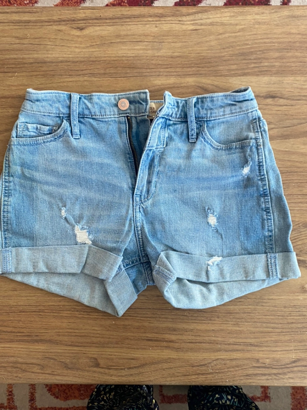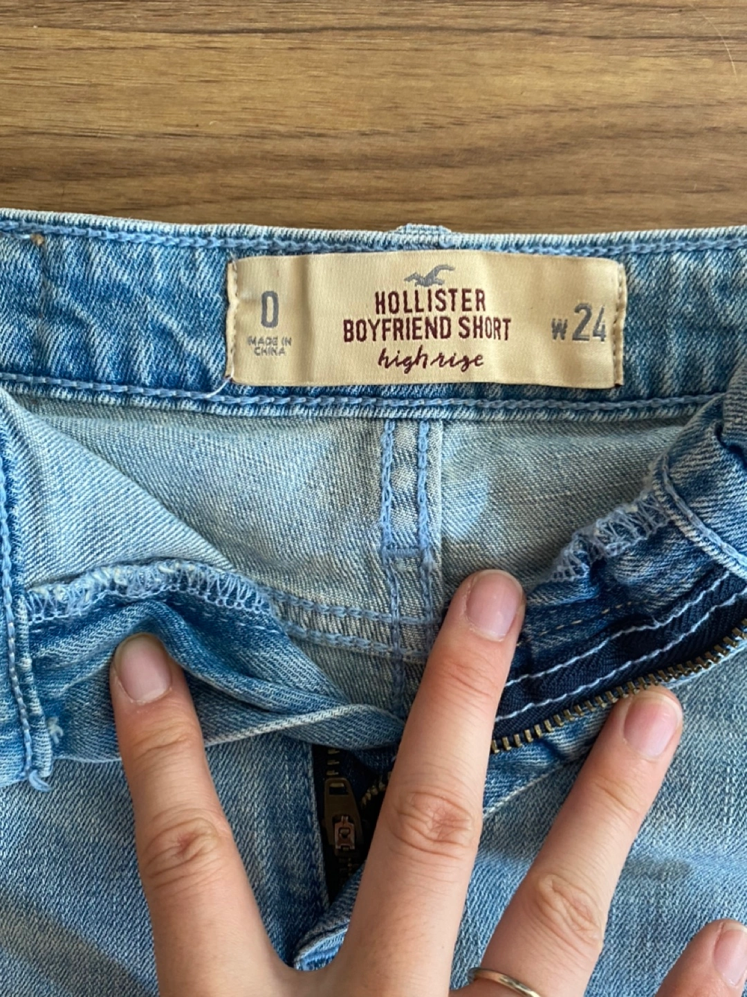 Hollister Boyfriend denim shorts in size 0. They have a light wash and some distressing. Cute and casual! I can meet at Adelaide east & sherbourne or king station most of the days!