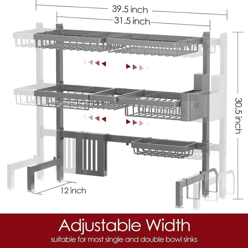 Extra-Large Adjustable Over Sink Dish Rack – Stainless Steel. New in box. Pickup is in Ajax, close to harwood bayly intersection. Dimensions: Adjustable width 31.5"–39.4", depth 12", height 30.5". Fits most standard sinks (ensure sink width < 39.4", faucet height < 21"). Premium 304 stainless steel – rustproof, waterproof, and durable. Includes utensil holder, cutting board rack, knife slot, and 5 utility hooks. Direct water drainage into sink keeps countertops clean. Multifunctional design stores dishes, glasses, sponges, and more.