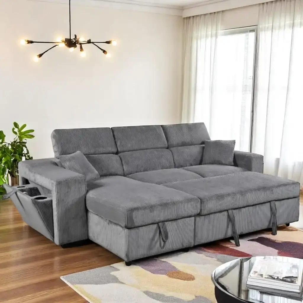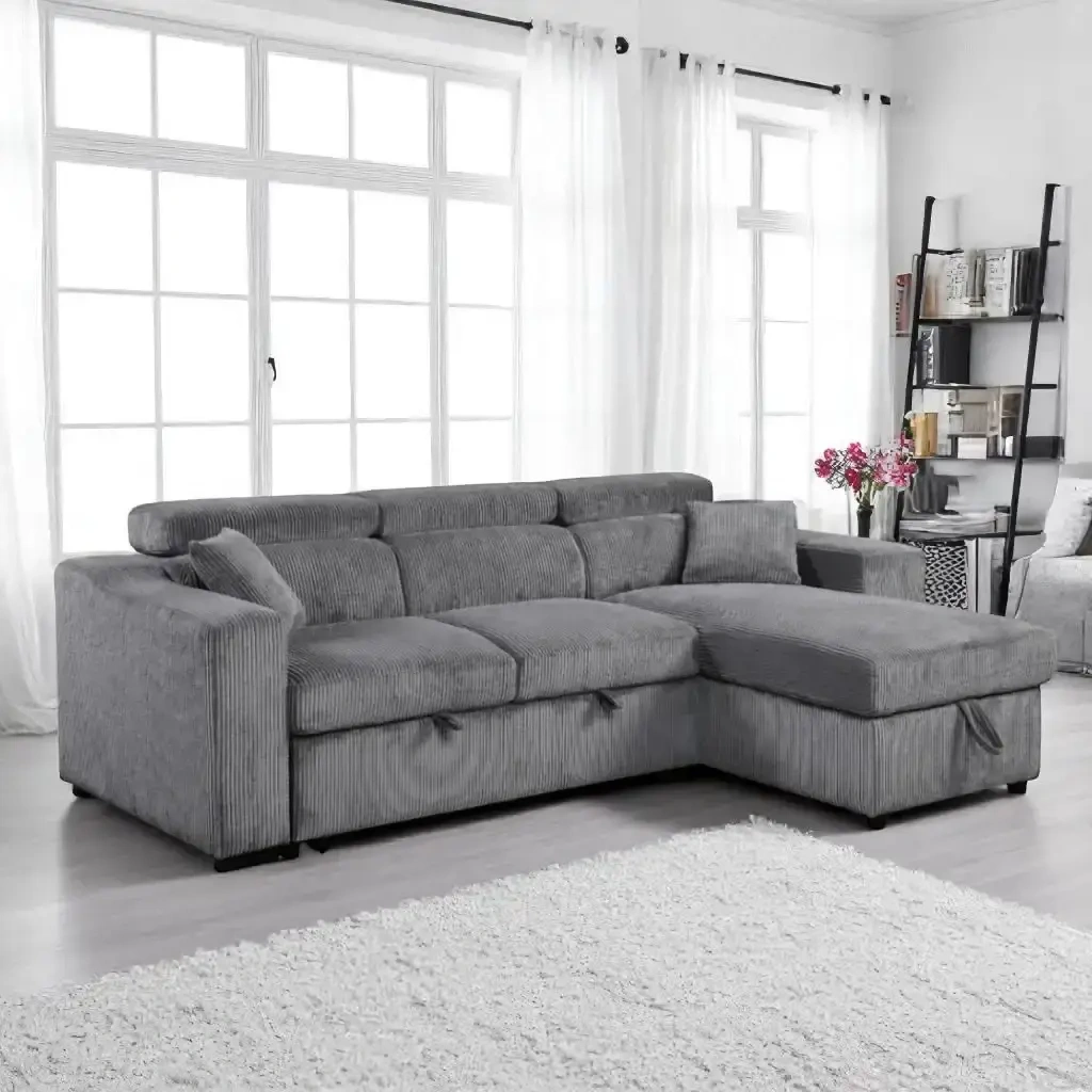 We sell Pullout Bed, Sleeper couches, dining tables, kitchen tables, dinette sets, bedroom sets, single beds, futon, sofabed, sectional beds, sleeper couches, bunk beds, recliner sets, leather sofas, table lamps, pull out bed, sleeper sofa, twin bed mattresses, roll mattresses, memory foam mattresses, queen bed frame, metal bed frames, accent chairs, coffee tables, end tables, night tables, console table, sofa tables dining chairs, wooden tables, king bed frame kids bed children’s furniture, floor lamp, wall art, paintings, rugs, etc…… Aureus Reversible Sectional Sofa Bed In Fabric Upholstery - Grey Available In Three Colors Grey Ivory & Black Also Refined Aesthetic Adjustable Headrests Chaise Lounge. Accent Pillows Included Convenient Maintenance Cup Holders Dimensions (W x H x D): 106" x 40" x 65" (Approximately) Sale Price$ 1399 Cod Available Order From Our WEBSITE and Get It Delivered to Your Home www.cosmichomescanada.com *WhatsApp: 226-883-3111* $$DELIVERY AVAILABLE AT ADDITIONAL COST $$ *CASH ON DELIVERY IS ALSO AVAILABLE PLEASE CONTACT**