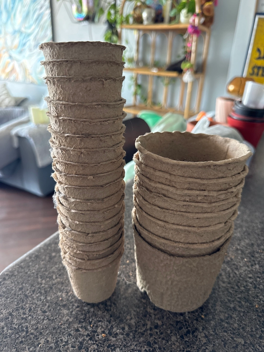 Selling a bunch of peat pots! These are great for starting seeds and are biodegradable, so you can plant them directly into the ground. Perfect for getting a head start on your garden this spring