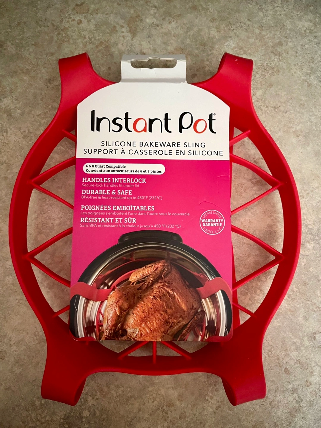 I'm selling a brand new Instant Pot Silicone Bakeware Sling! It's compatible with 6 & 8 quart Instant Pots. It's silicone and features handles that interlock for easy use. It's durable, safe, and resistant to heat up to 450°F (232°C).