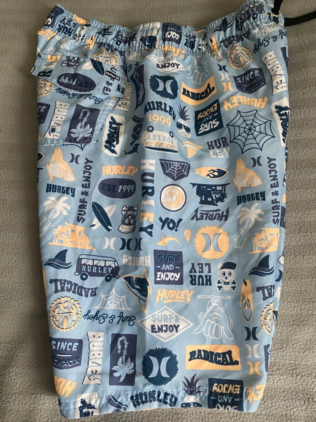 Selling a variety of Kids Swimming shorts! - One pair of yellow Nike shorts, size XL (158-170 cm). - One pair of blue Hurley shorts, size L - One pair of blue Under Armour shorts, size YXL/JTG/EG. ✅ Take all for $15