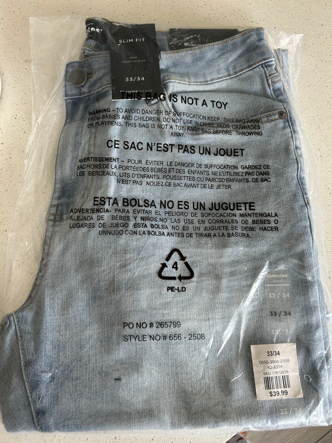 The style number is 656-2508. The original price was $39.99 Brand New With Tags Slim Fit Jeans Size: 33/34 Condition: Brand New Colour: light wash Delivery may be available depending on your location