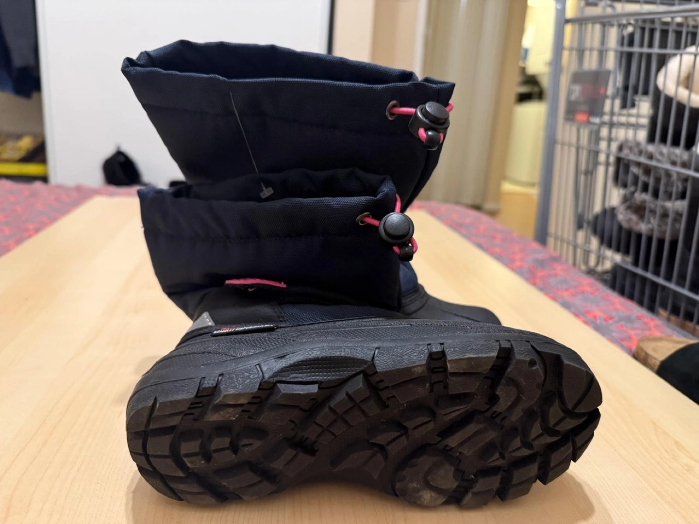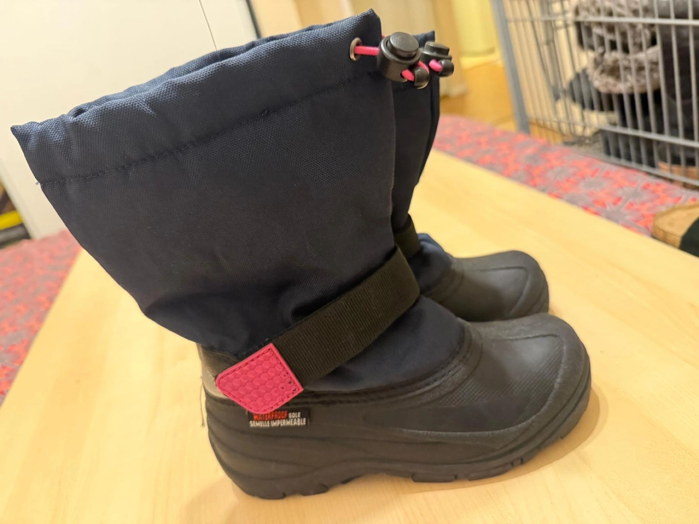 Stay warm and dry this winter with these durable women’s snow boots, perfect for snowy and wet conditions. • Condition: Gently used, in excellent condition • Size: Women’s 7 • Colour: Black upper with pink accents • Material: Waterproof rubber sole and weather-resistant fabric upper • Design Features: • Adjustable drawstring closure at the top to keep snow out • Velcro strap for a secure fit • Thick, non-slip rubber outsole for excellent traction • Warm insulated lining for comfort in cold weather • Perfect for: Snow shoveling, winter walks, outdoor activities, and icy conditions