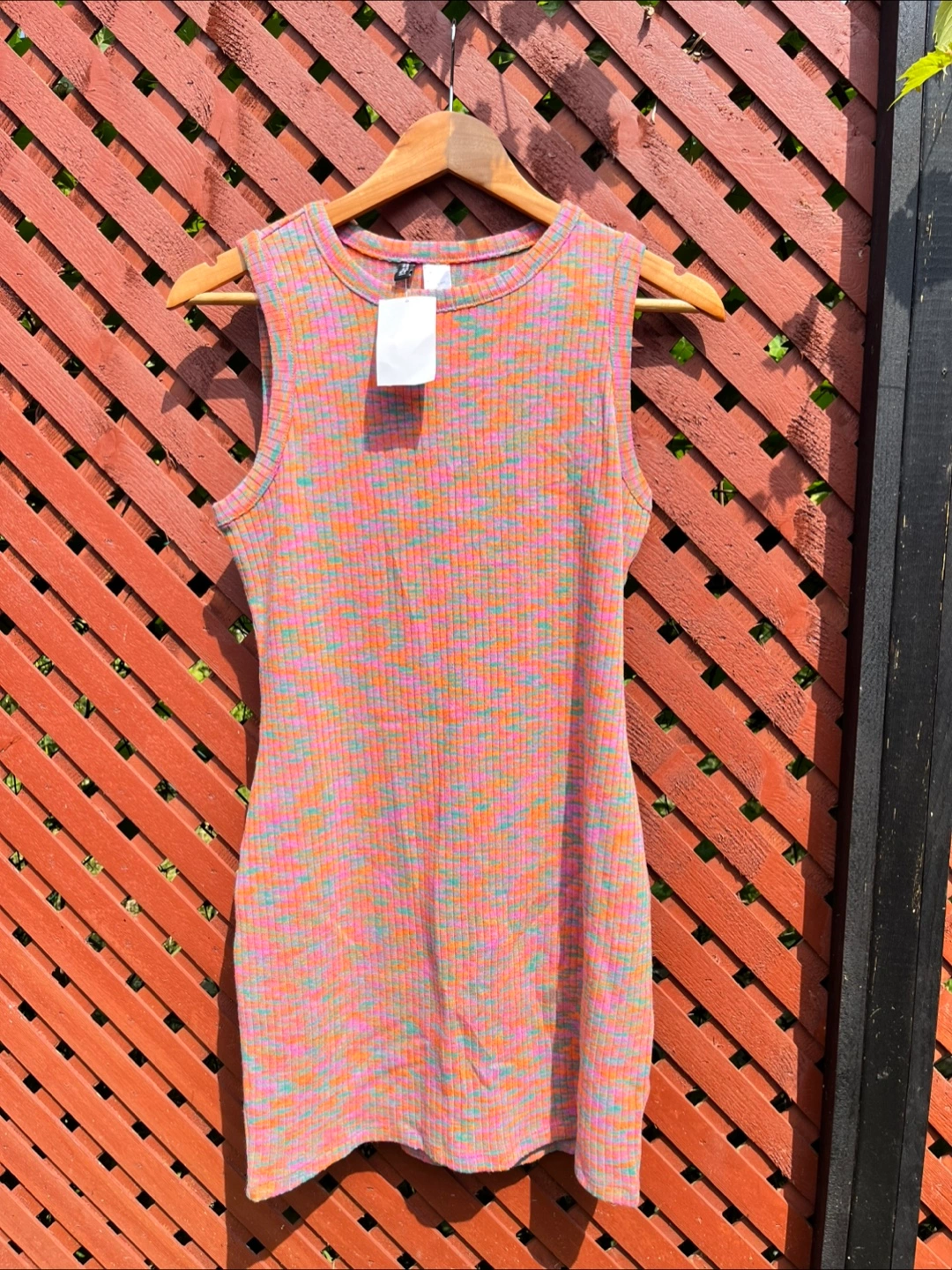 Here's a cute H&M sleeveless dress in a size medium! It features a colourful striped pattern. Perfect for summer days! Pick up only