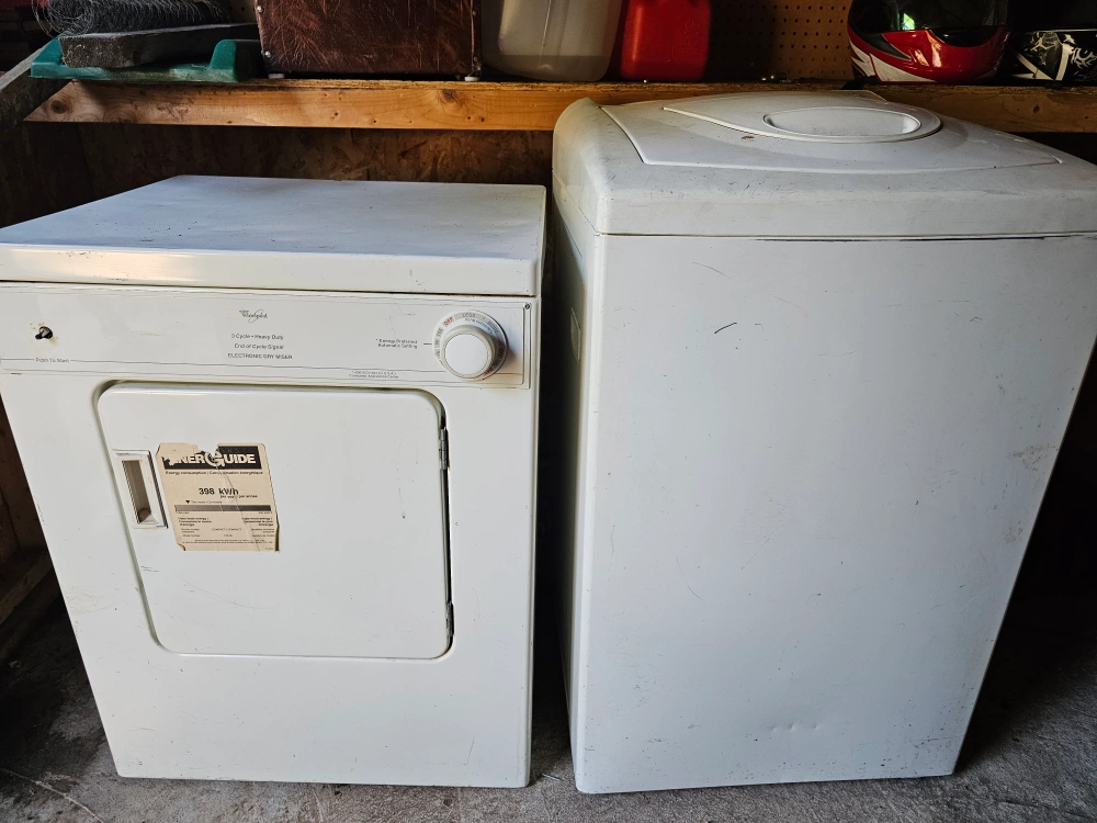Selling a Whirlpool 3 Cycle Heavy Duty dryer. Also a Whirlpool 4 cycle hot/cold washer on wheels, apartment size for both. They are both functional and working just have been unused and stored, ready for a new home! Perfect for getting your laundry done efficiently. Honestly just need a good wipe for storing, minor scratches from use. Sold as set or could be separated