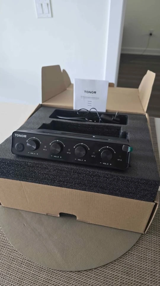 4 handheld UHF mics, 10 channels each Stable signal up to 200 ft Clear sound for singing & speeches Perfect for parties, church, weddings Sleek red design, cordless convenience Each mic requires 2×AA batteries (not included). Pick up in Oakville