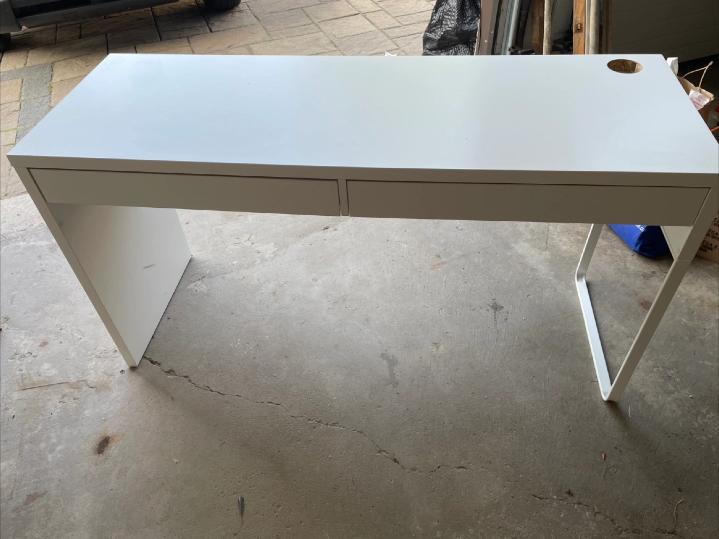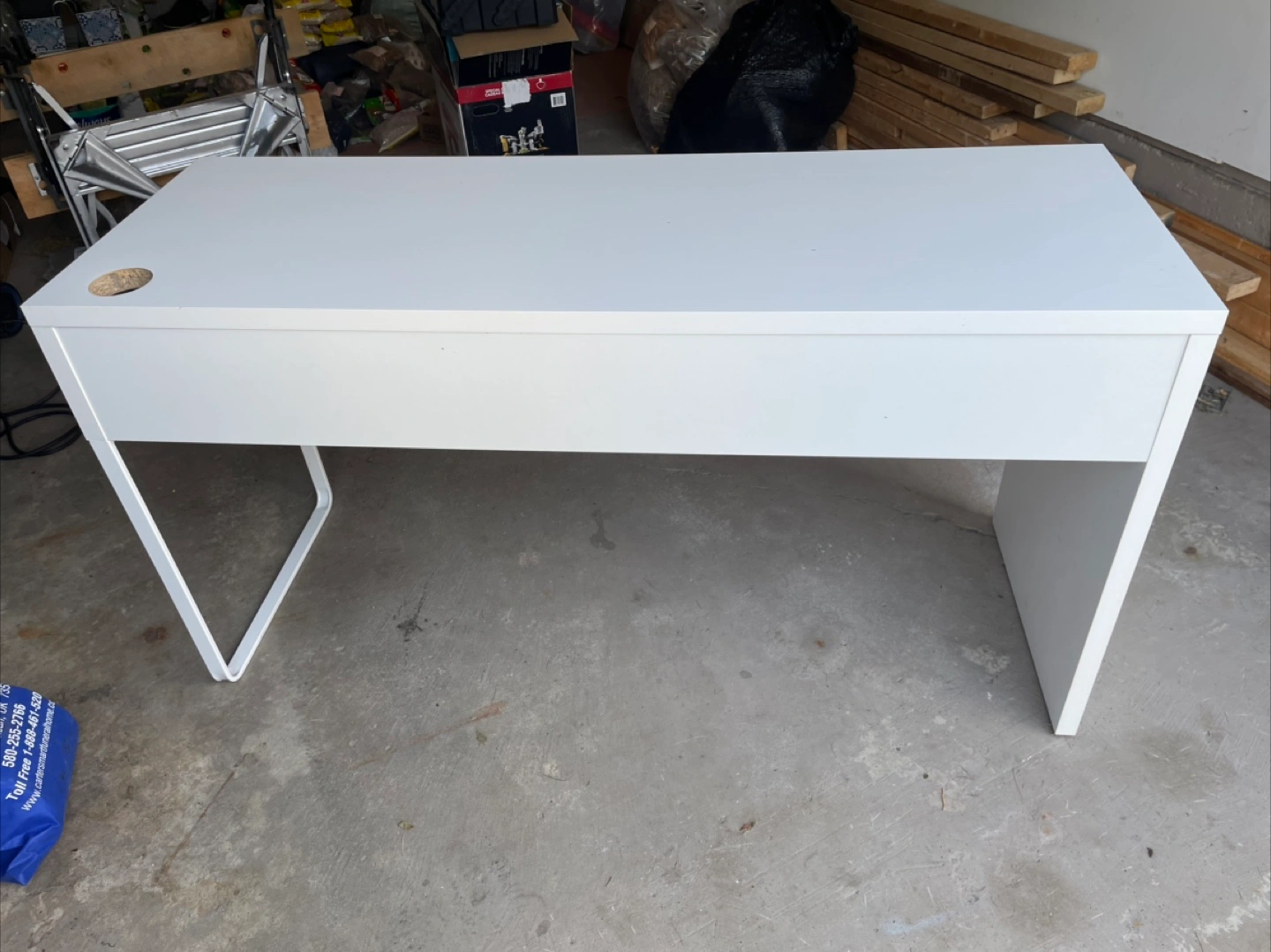 Selling a white desk with drawers, perfect for a home office or study space! It's in great condition and ready for a new home. The desk is a clean, minimalist style that fits well with any decor. It's sturdy and provides ample workspace