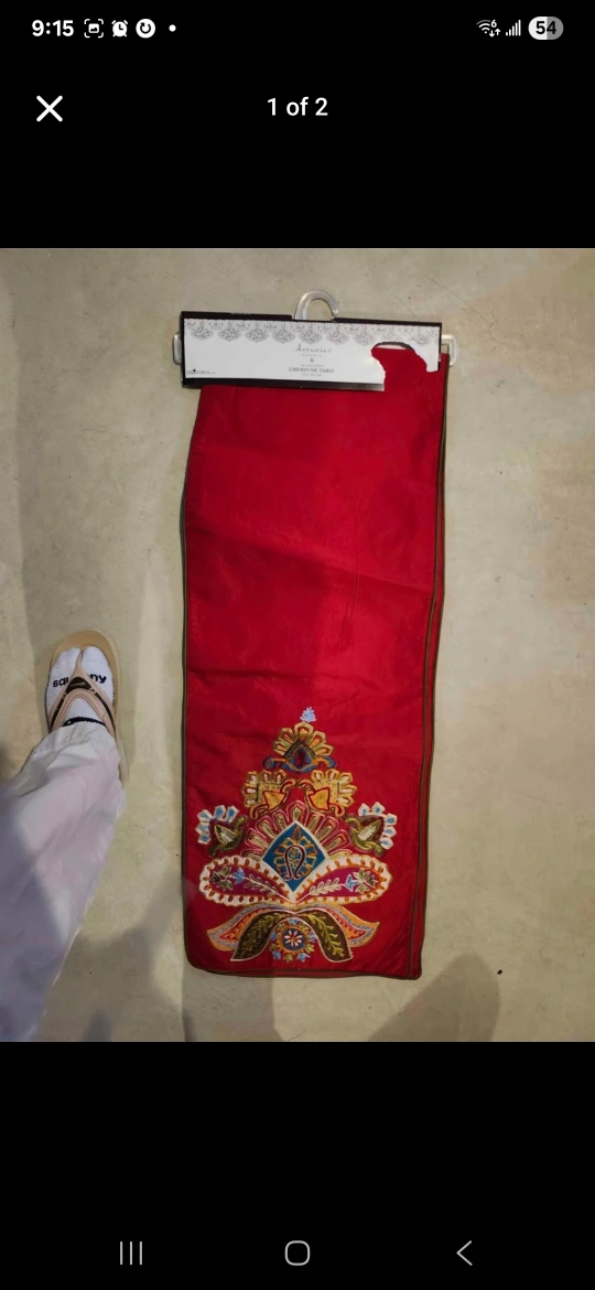 Selling a lovely Arctica Accents Chemin de Table. It's a vibrant red colour and measures 33 x 183 cm. The material is 100% polyester. It has a beautiful design on it, perfect for adding a touch of elegance to your table!