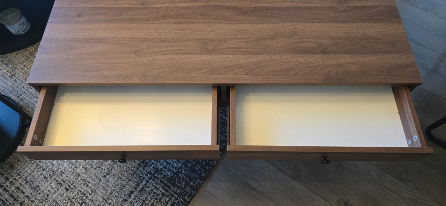 PICK UP DUNDAS AND REGENT PARK BLVD Here's a lovely wood coffee table that would look great in any living room. It features two drawers for storage, perfect for keeping things tidy. The table has a sturdy base, and the wood grain adds a touch of warmth to your space Measurements are 46.5" L x 23" W x 16"H