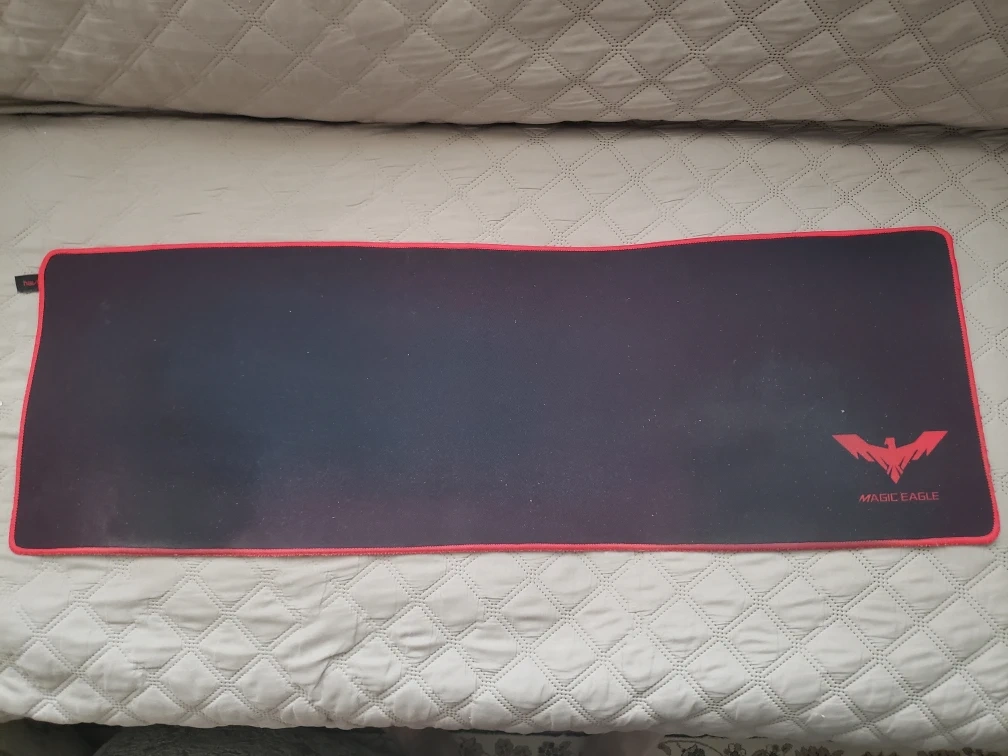 Selling a large gaming mouse pad from Magic Eagle! It's in great shape and perfect for any gamer looking for a bit more space for their mouse movements. The pad features a red trim and the Magic Eagle logo in the bottom right corner. 89 x 29 cm