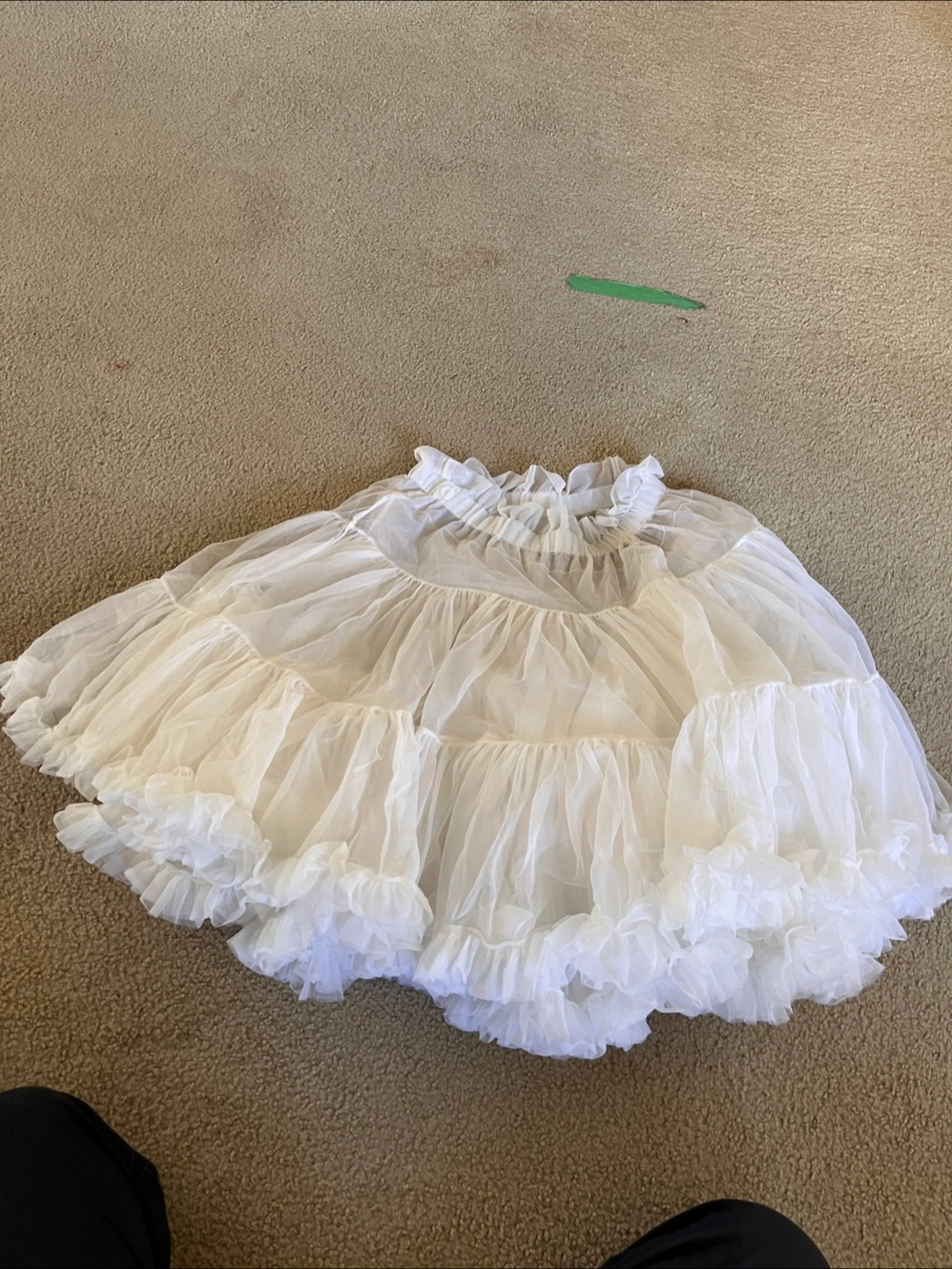Here's a white petticoat skirt! It appears to be about 22 inches in length. It looks like it would be a great addition to your dance wardrobe!
