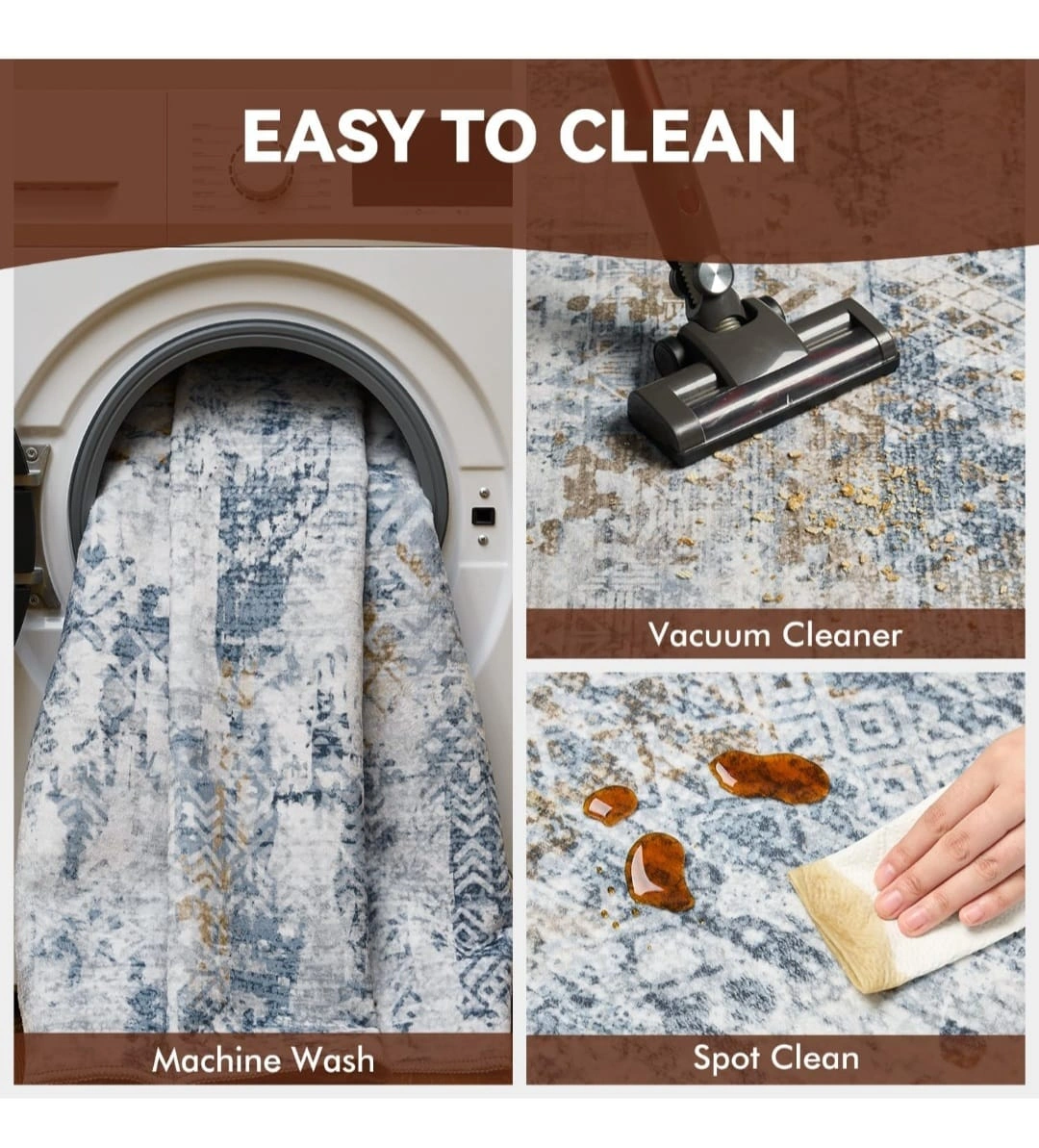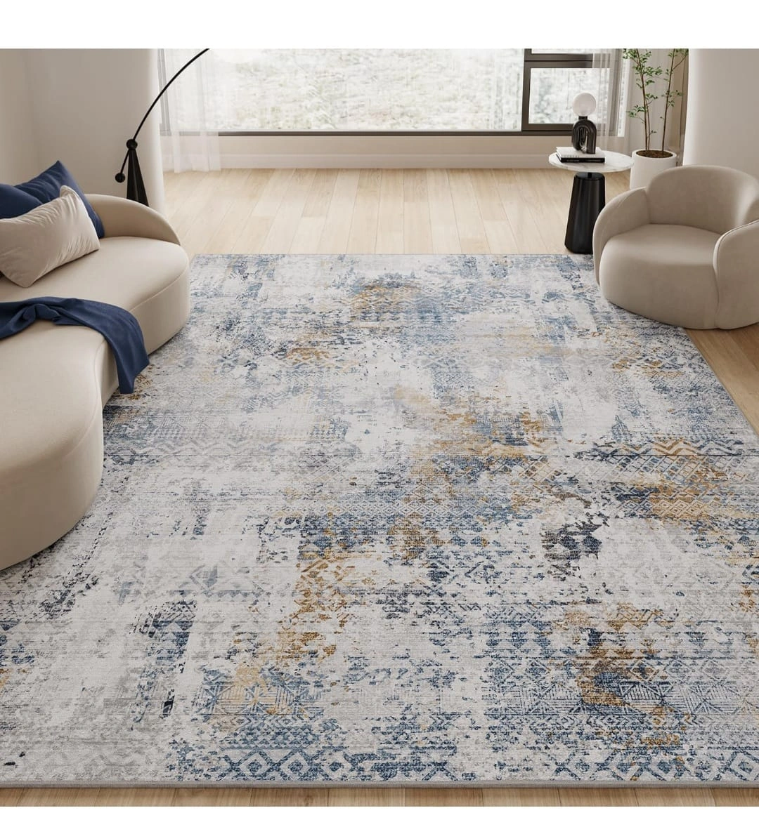 Rugs for Living Room 8x10 Area Rug-Carpet for Bedroom Carpet Machine Washable Rug Boho Rug Large Area Rug for Dining Room Office Rug Soft Non Slip Modern Abstract Blue Gold #27 Brand New