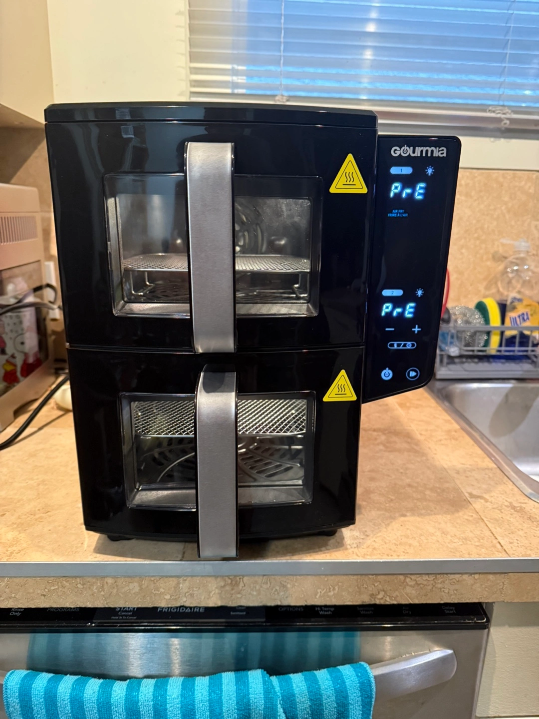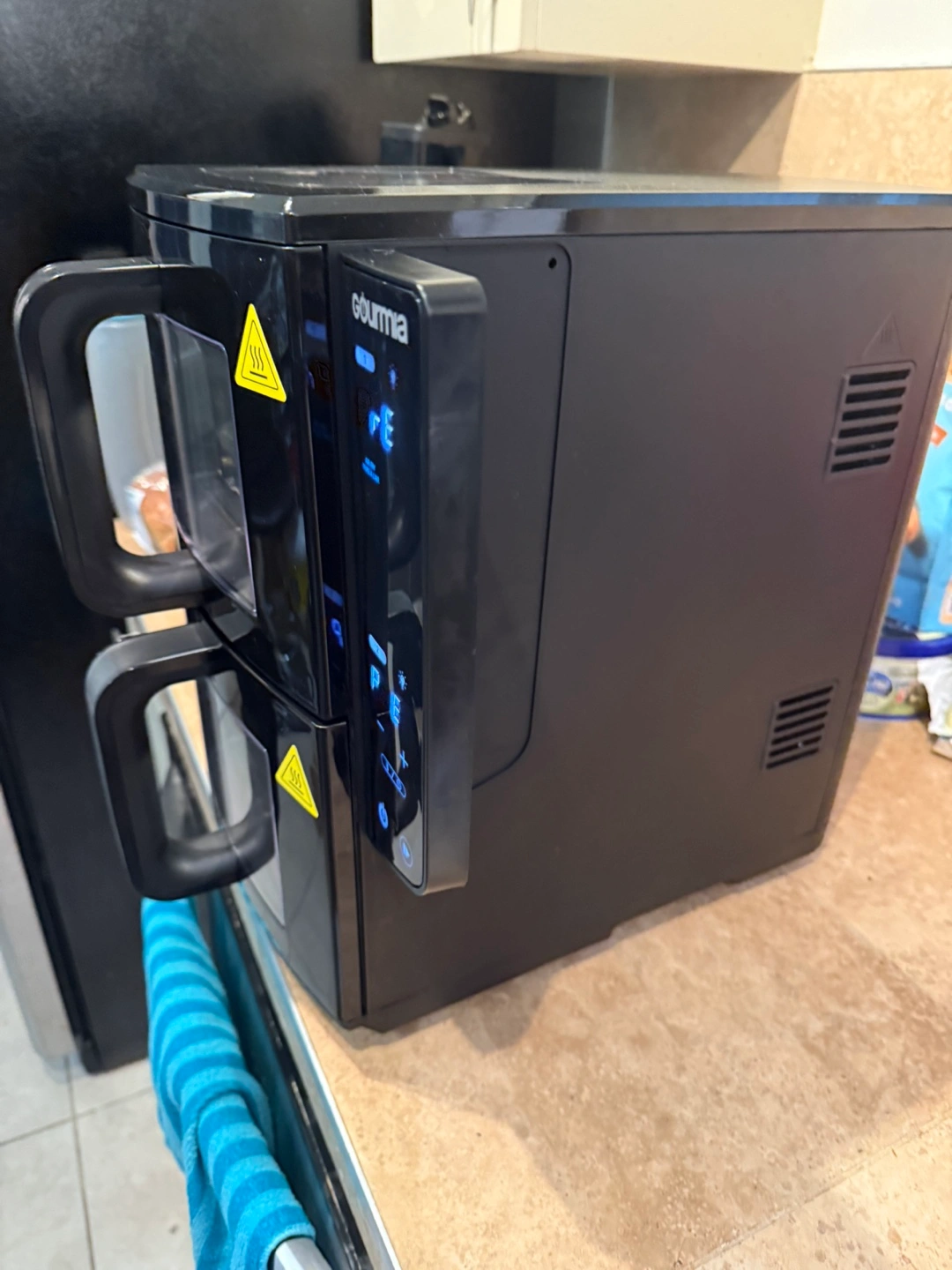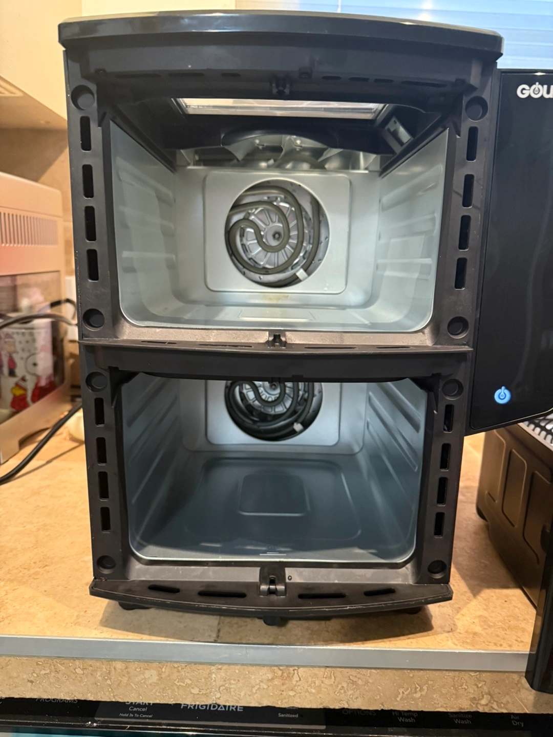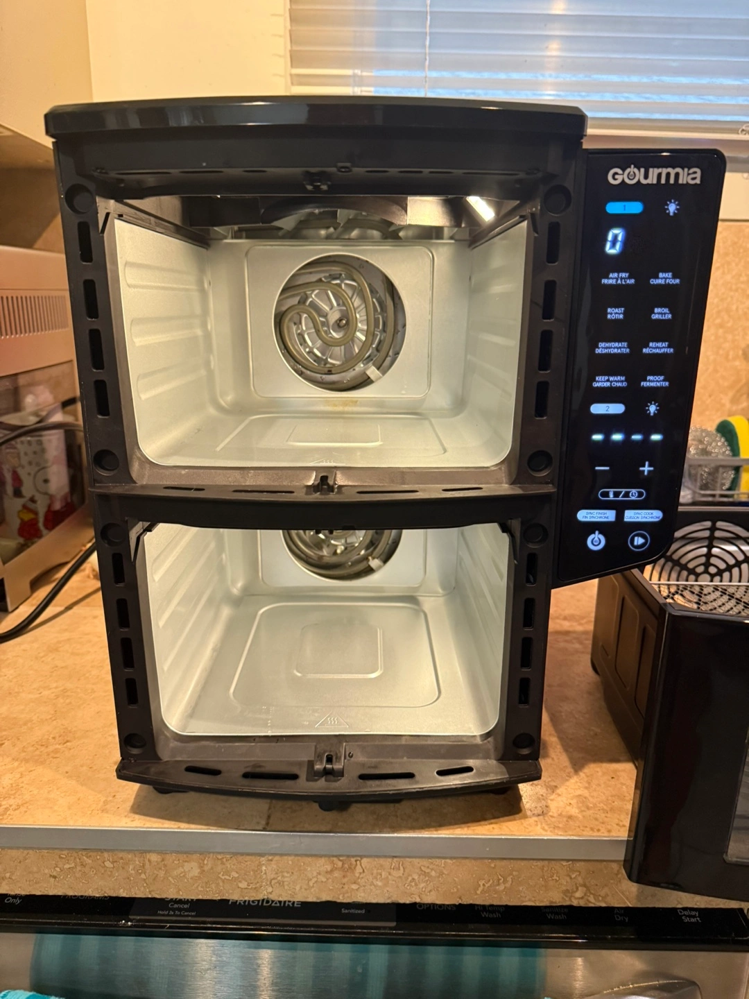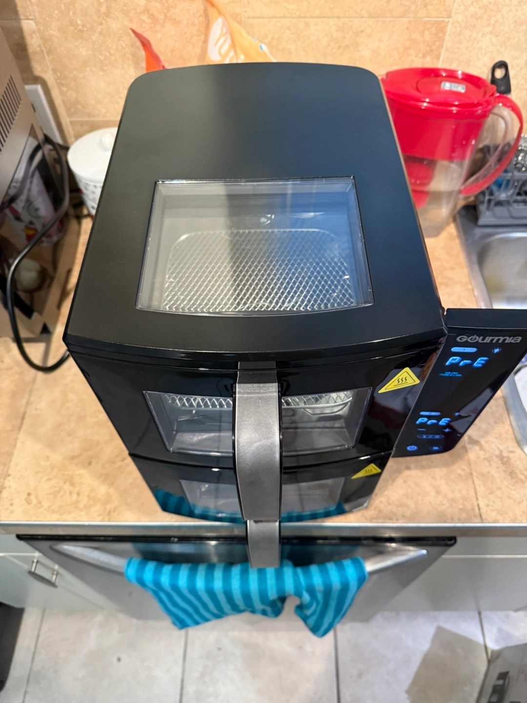 I'm selling a Gourmia 4 Dish Dual Basket Air Fryer with Sync Finish & Sync Cook, 10.4 L (11 qt.), perfect for cooking multiple dishes at once This appliance is great condition and was used before . It’s an ideal addition to any modern kitchen, promising efficient and healthy cooking. Features: Space saving design: ingeniously designed air fryer with 2 stacked baskets cooks more food in less space 4 layer cooking: place a rack in each basket for a combined 4 layers of cooking FryForce 360° Technology™: circulates superheated air surrounding food for crispy perfection Sync Finish: cook 2 different foods in 2 ways and have them finish together Sync Cook: sync settings across both baskets for full 10.4 L (11 qt.) capacity XL capacity: use both 5.2 L ( 5.5 qt.) baskets independently or sync their settings for the full 10.4 L (11 qt.) capacity. 8 one touch cooking functions: air fry, bake, roast, broil, dehydrate, reheat, keep warm, proof Window and light to monitor your food at a glance Easy cleanup: dishwasher safe nonstick baskets and crisper trays If you're seeing this ad, the air fryer is still up for grabs! Don't miss out! Pick up in Lower Mount Royal . Please check out more of my items and get a good deal.