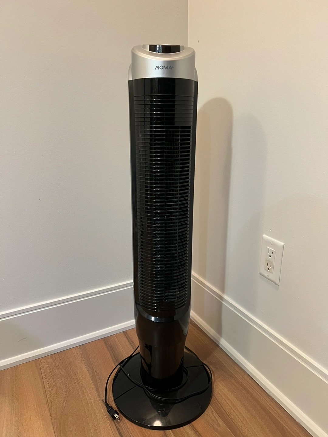 Selling a NOMA tower fan in black. It's in great condition and ready to keep you cool! This fan is perfect for any room in your home