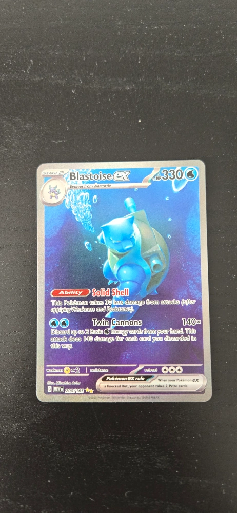 Selling a Blastoise EX Pokemon card, numbered 200/165. It's in great condition, ready for a new home and is in near mint condition!
