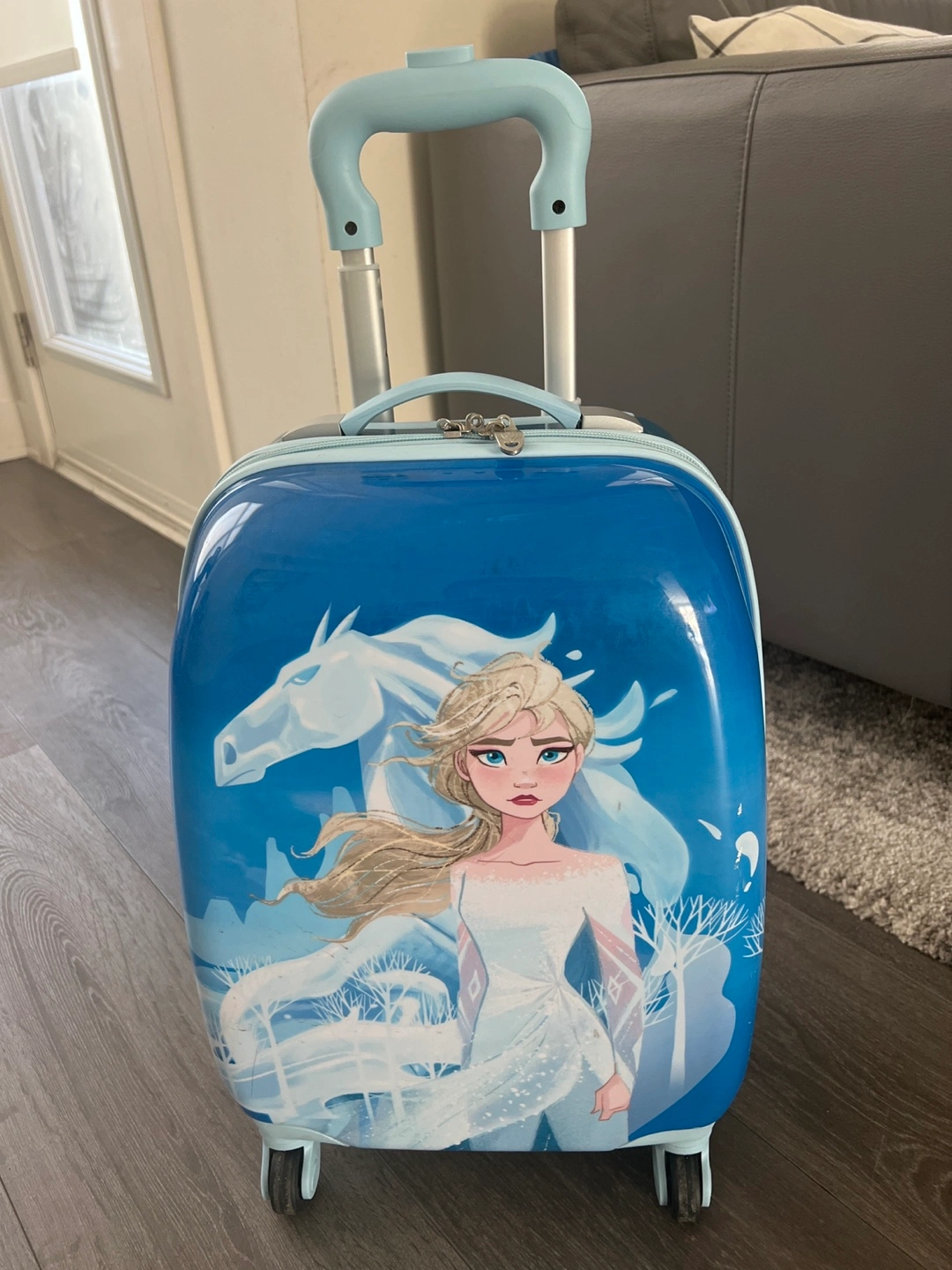 Selling a cute Disney Frozen rolling luggage for kids! It features Elsa and a horse design on the front. Perfect for little travellers! Good condition inside , but shows a bit of scuffs outside. Cash only Pick up in Vaughn . Major Mackenzie Drive West (Tim Hortons)