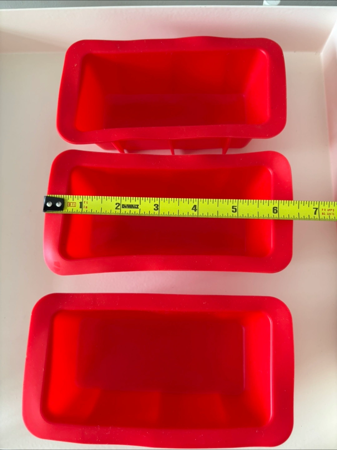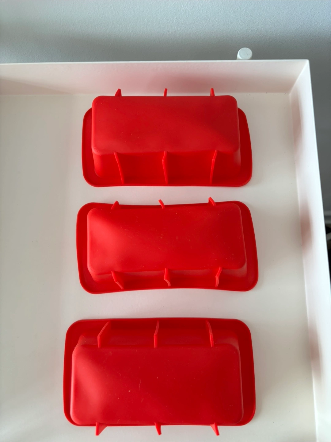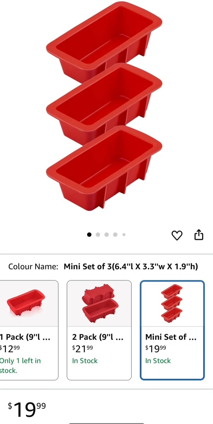 Selling a set of three red silicone mini loaf pans! Perfect for baking small treats or individual portions. Used once. Mini Set of 3(6.4''l X 3.3''w X 1.9''h) Purchased for $22 on Amazon