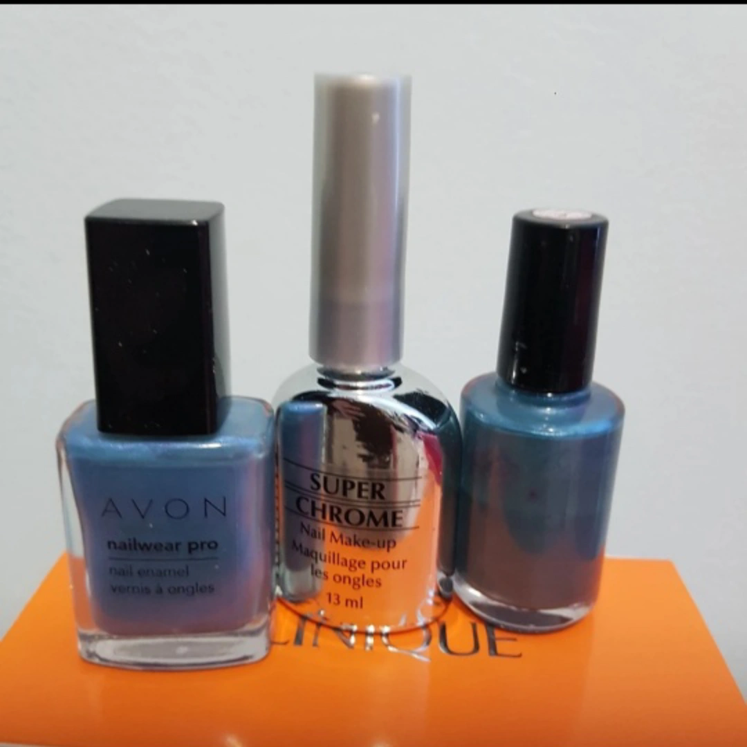 Lot of 3 blue nail polishes. 2 on the left have been tested. The one on the right is half full. *The one in the centre is metallic. Pick up only at Adelaide and Portland or Keele and Finch