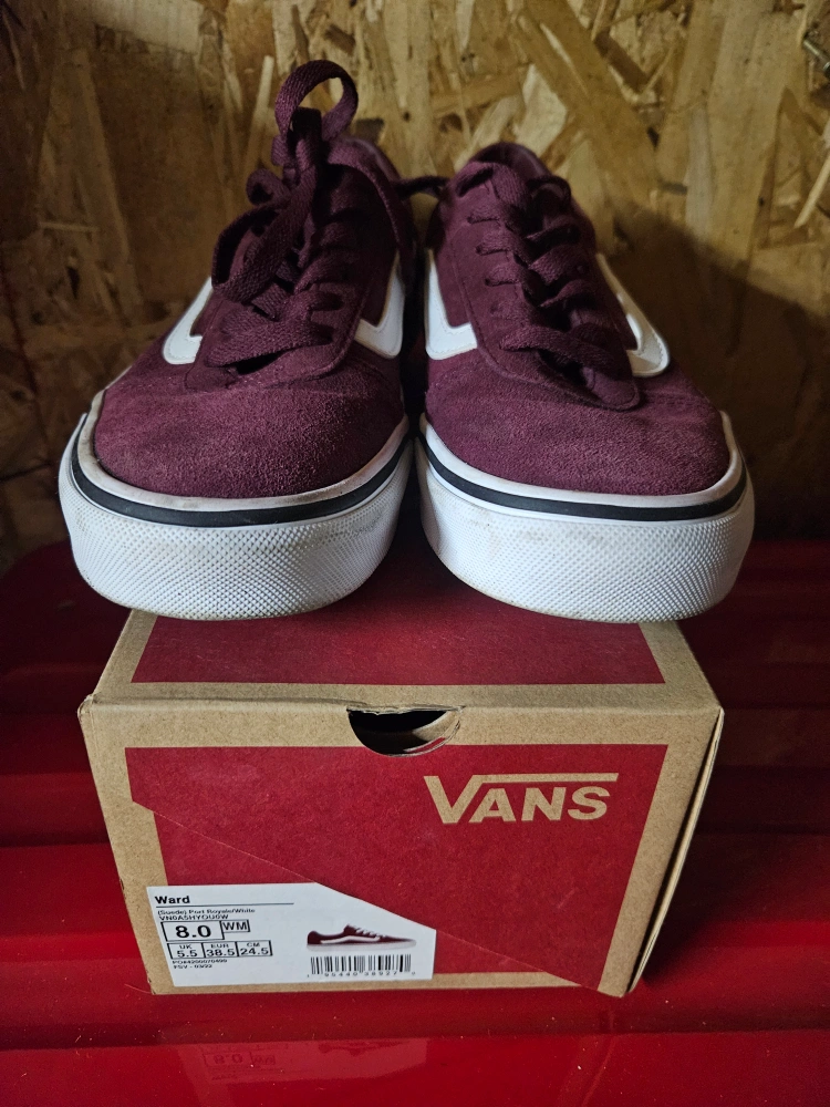 Selling a pair of Vans Ward sneakers in maroon and white. They're a women's size 8. The box is included! Used a couple of times, for pick up and prices is negotiable