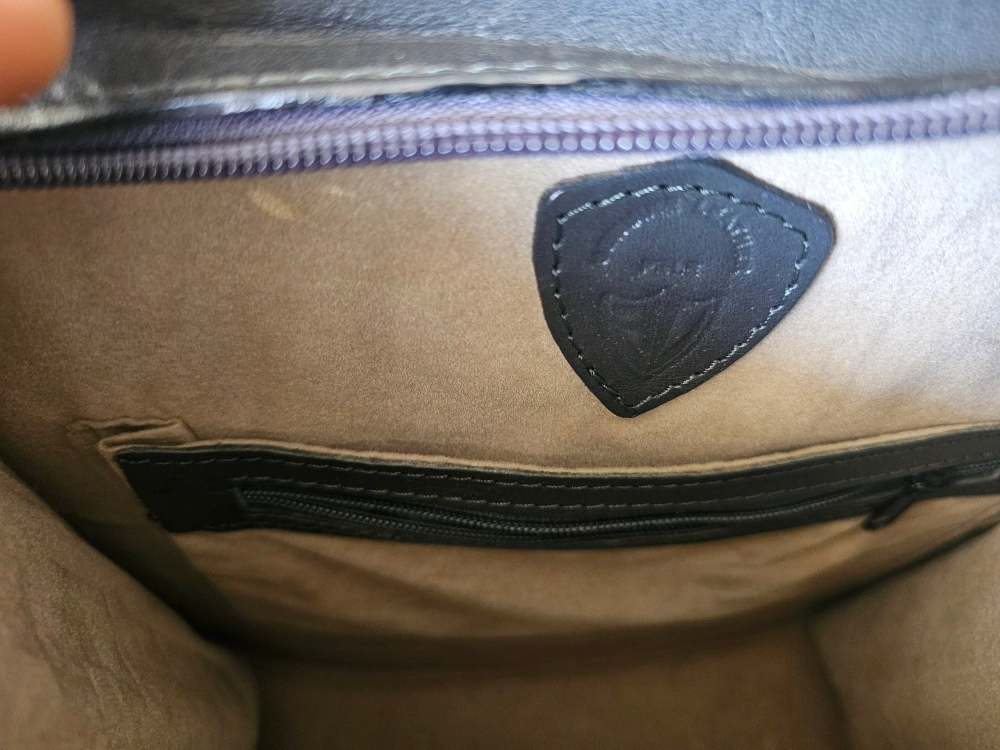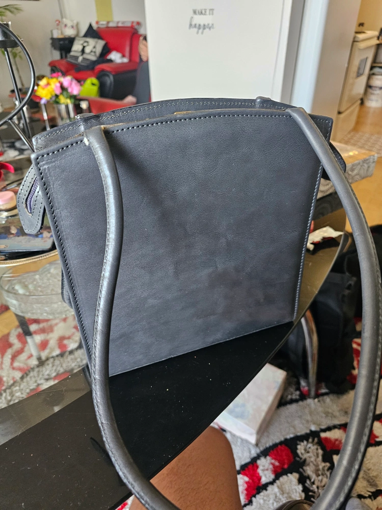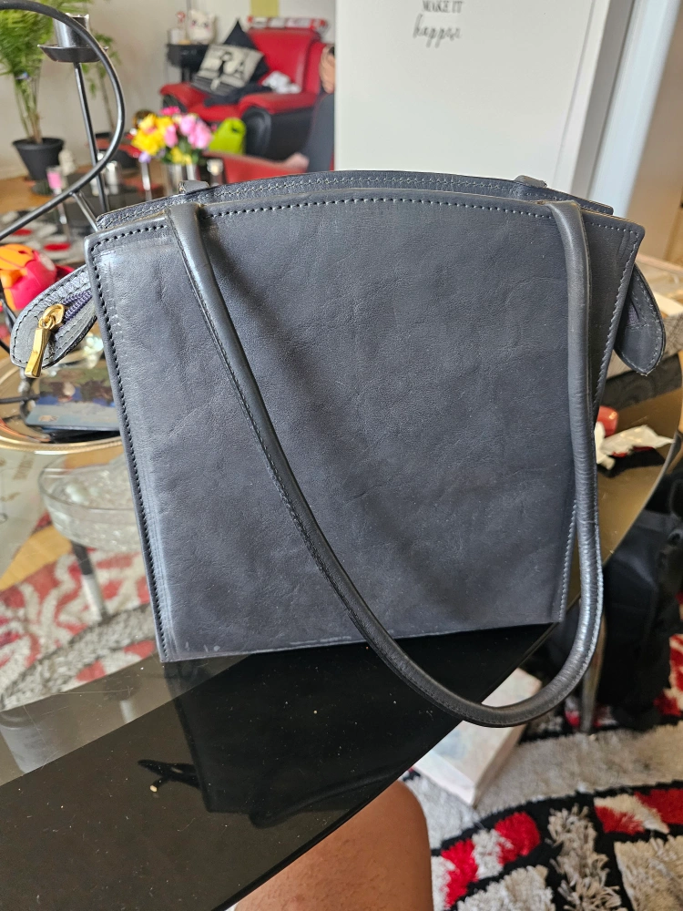 Selling a vintage leather handbag. It's in good condition and has a unique design. The bag is black and features a zipper pocket inside. It would be perfect for everyday use! VICTORIA
