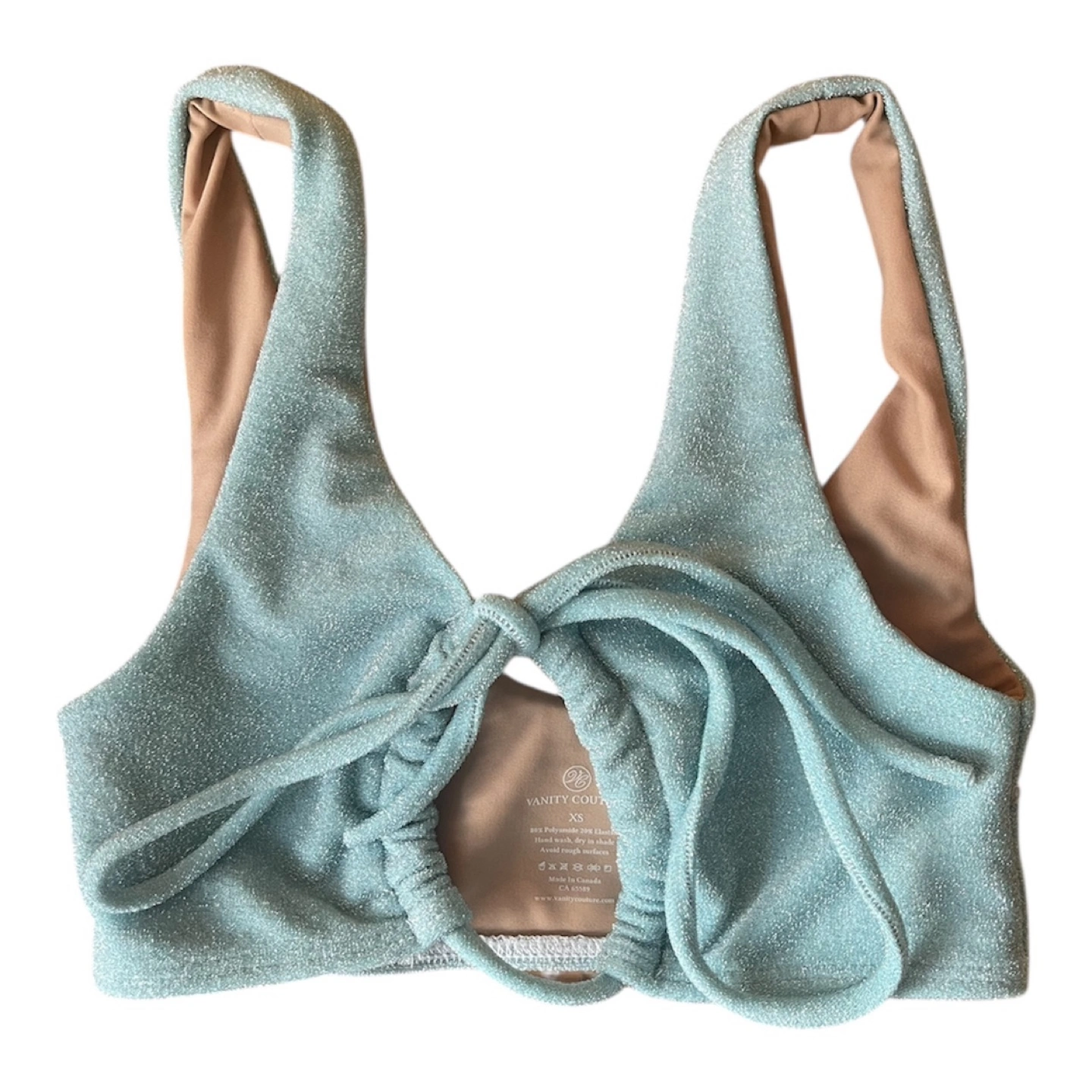 NWT Vintage 2000s Y2K Bikini Push Up Top Adjustable Tie Up Strings Blue Sparkly XS/Small Condition: 10/10! NEW! Style Details Top: VERY Y2K style Color: sparkly light blue - shimmery Push-up bikini top - with its multi-way design Thick supportive straps Not only is this swimsuit top glamorous, but it also gives maximum support Adjustable tie up strings Details: Multi-way criss cross top Open front Straps can tie behind neck or waist Maximum support and push up Fabric: Double lined 80% Nylon, 11% Spandex, 9% Metallic | 80% Nylon, 20% Spandex Measurements Inches: Mannequin is an overall size Medium Top Tag Size: XS/Small US Size:0-4/ EUR: 32-36/ AUS: 4-6 Bust: 29-32 Cup Size: AA - B #beachvibes #ravewear #sparkly #Y2K #vintagebikini