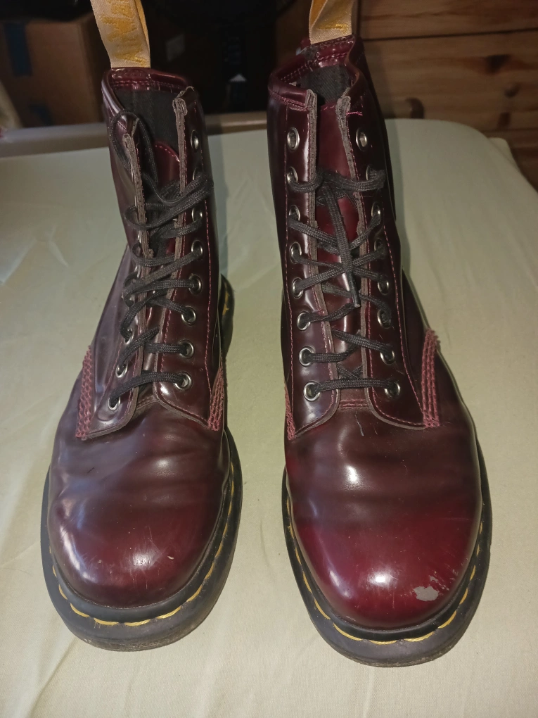 Selling a pair of Dr. Martens Vegan 1460 boots in Cherry Red. They are in great condition, no wear on the soles, scuff on the left toe, ready for a new home! Pick up only
