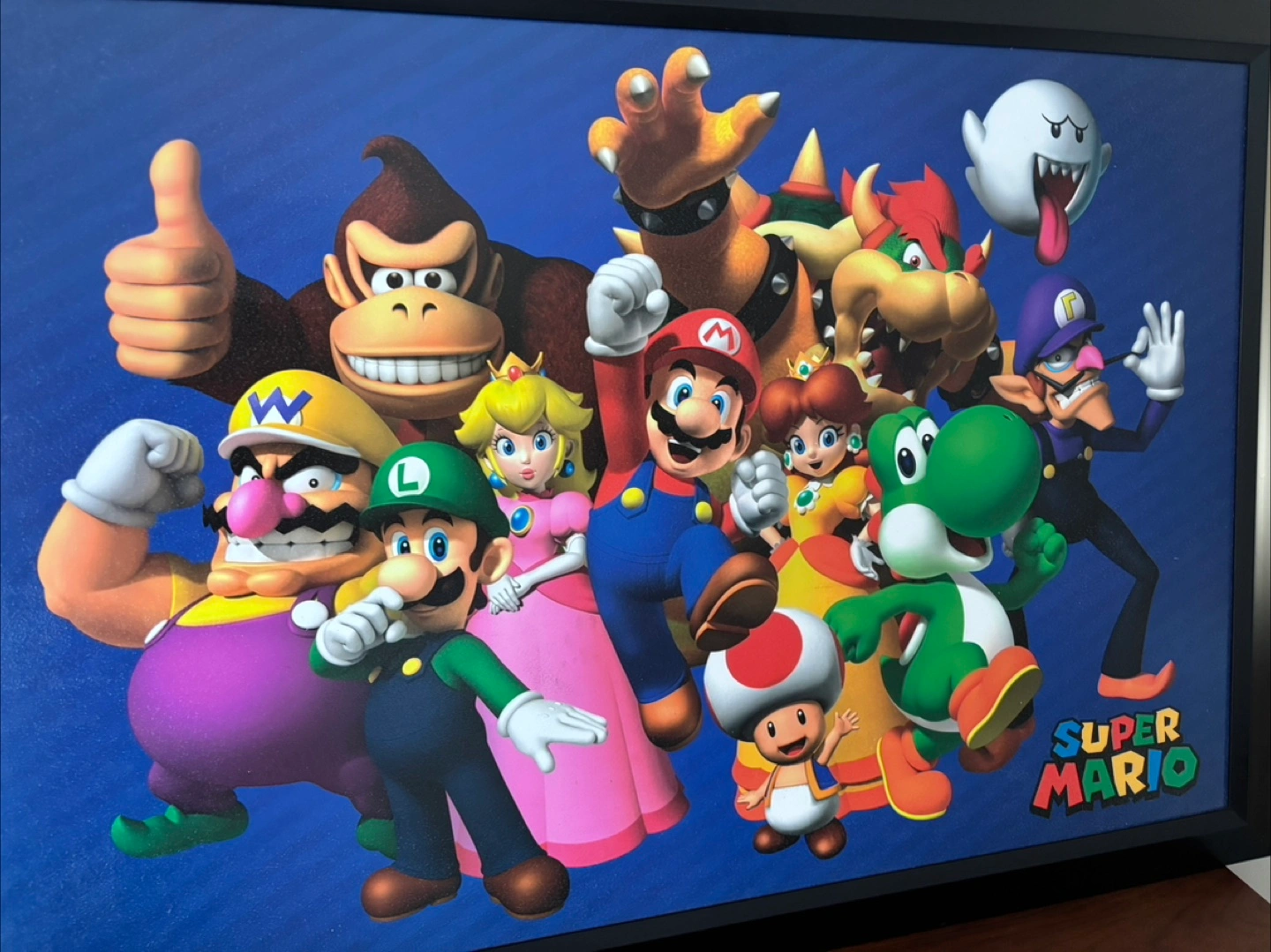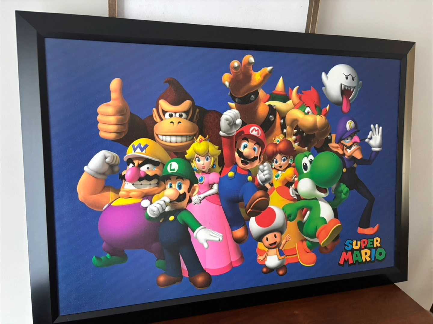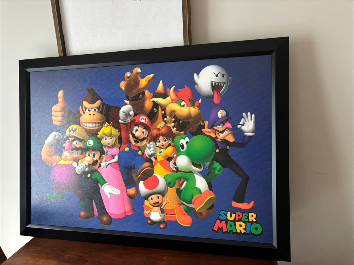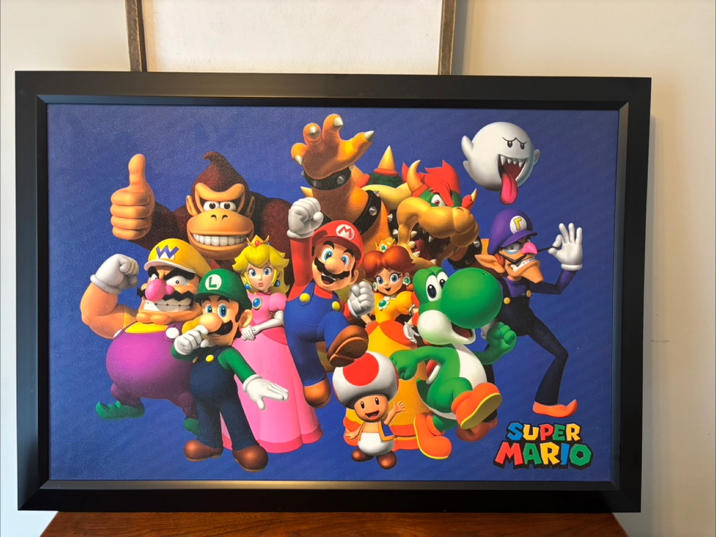 Selling a large framed Super Mario picture! It is not a poster! It features all your favourite characters from the Mushroom Kingdom. This would be a great addition to any game room or kid's bedroom. 29” by 38”. Cash only.