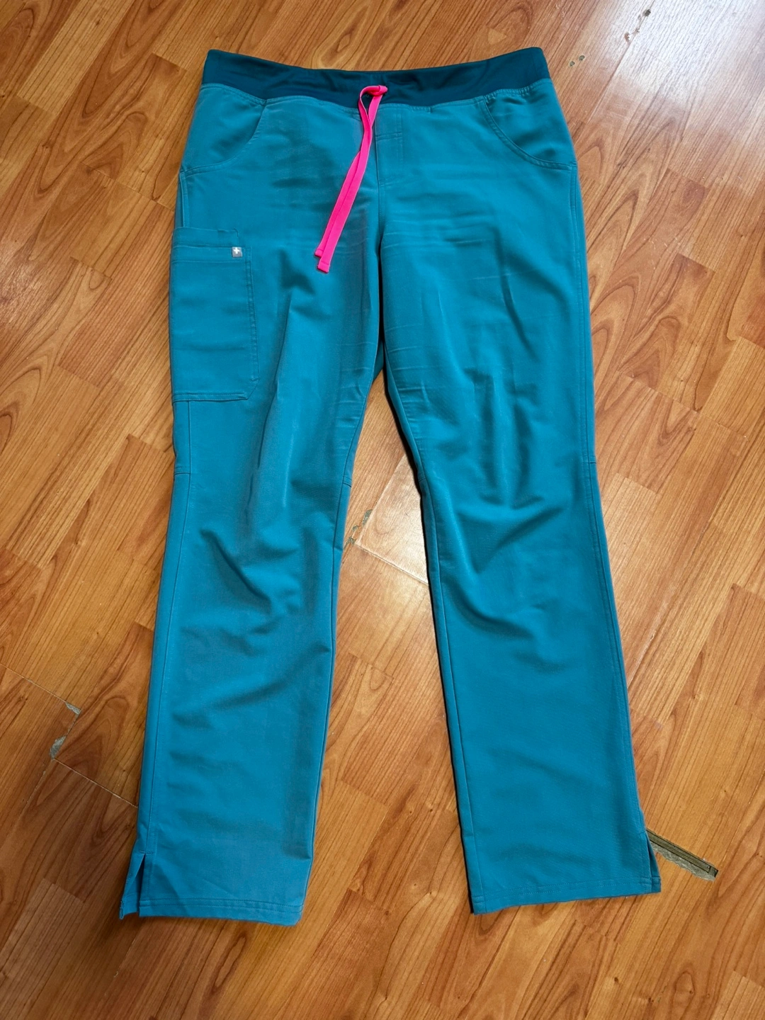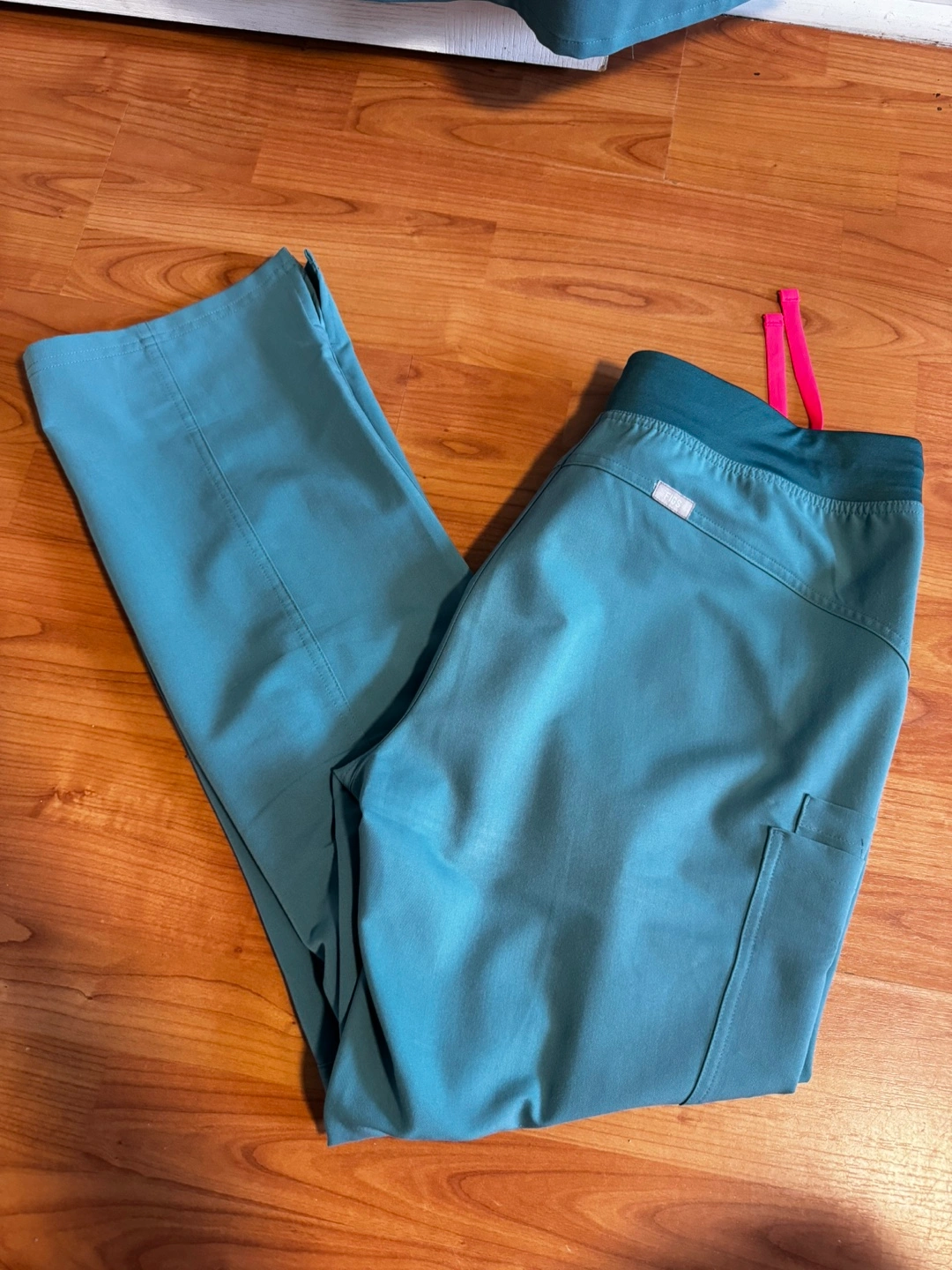 Selling a FIGS scrub set Casma and Kade in Hydrogreen teal blue colour! The top and pants are both size L. They're in good condition and ready for a new home!