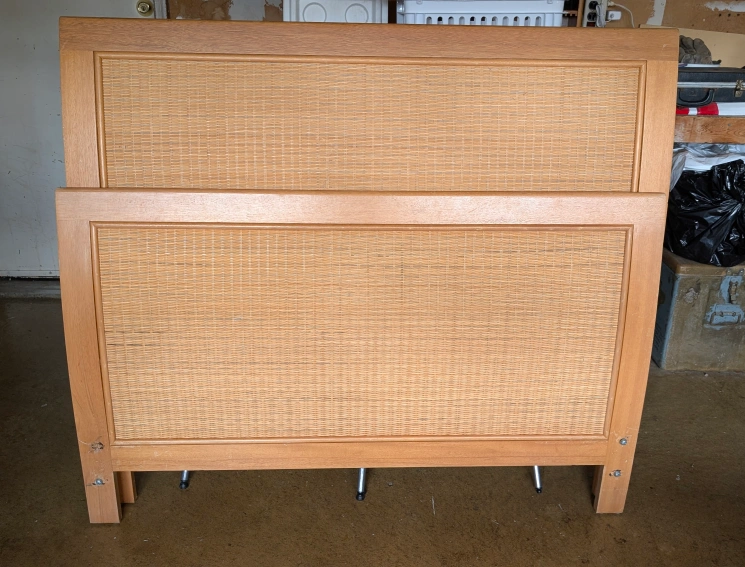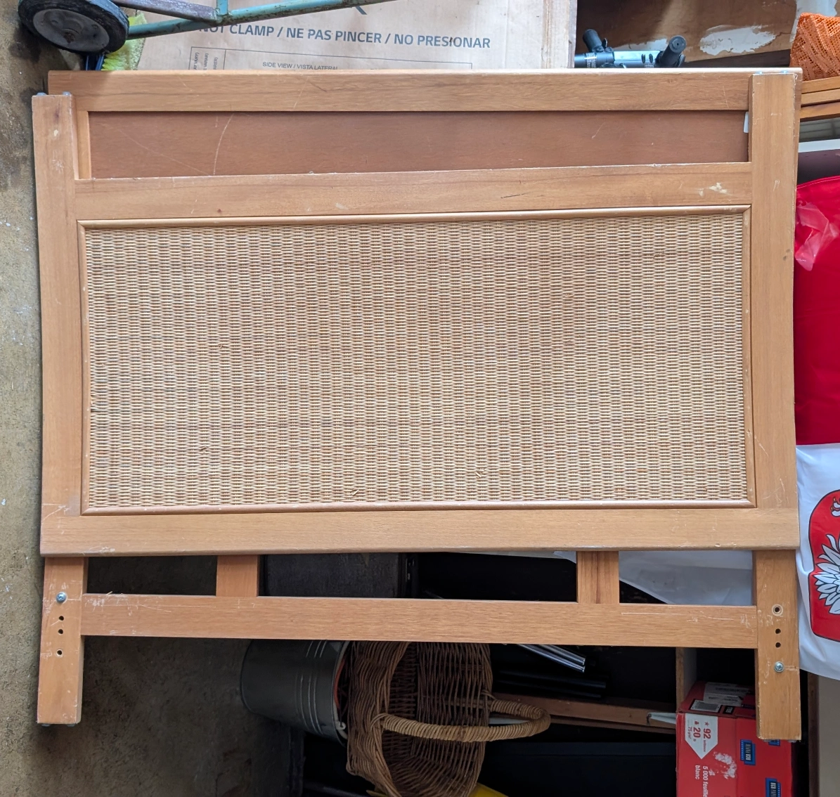 Selling a headboard+footboard set from Pier 1 Imports. It has a woven rattan panel and a wooden frame. Made in Indonesia see photos please double/full bed size: width 140cm headboard height 122cm footboard height 86cm