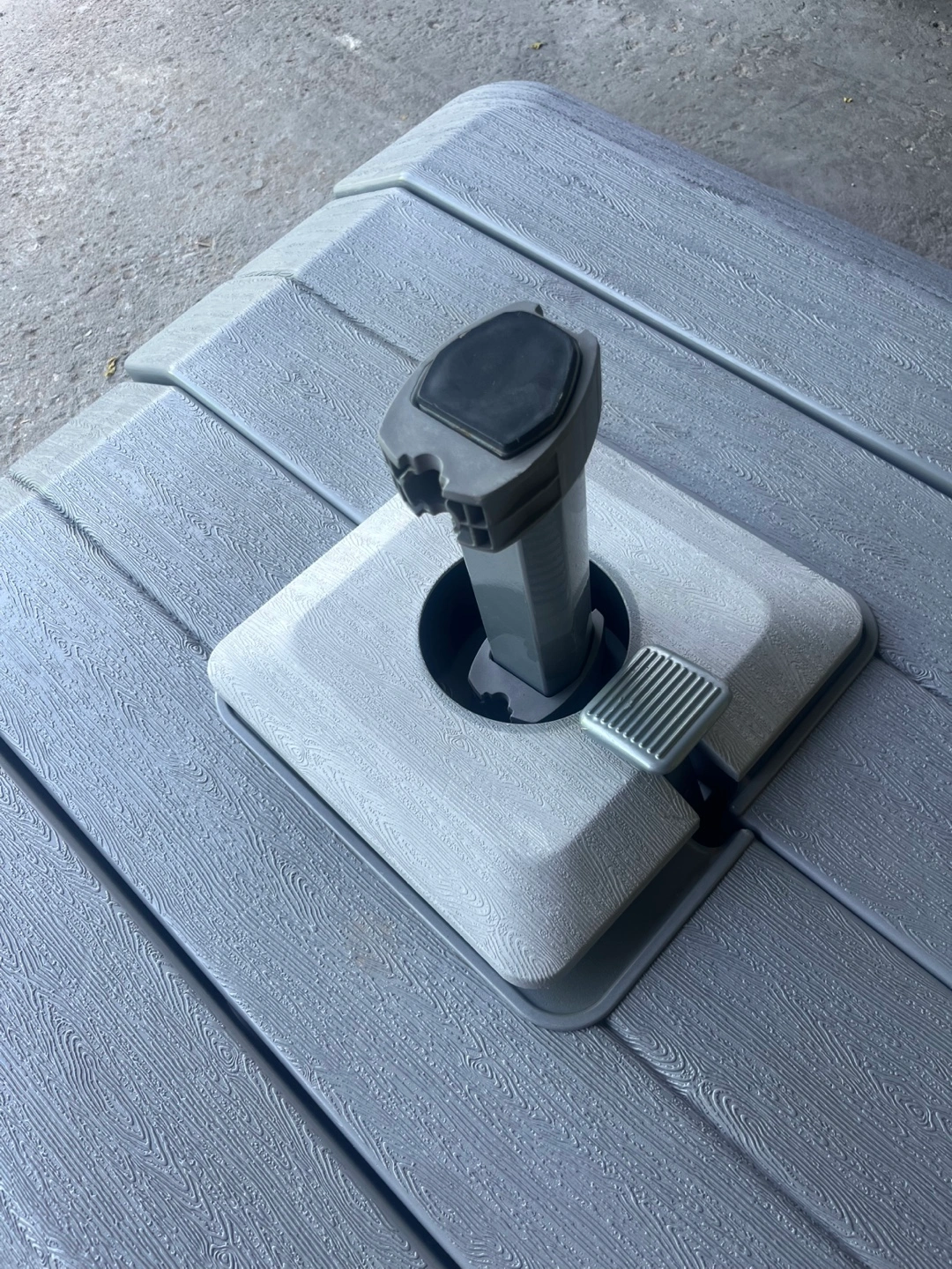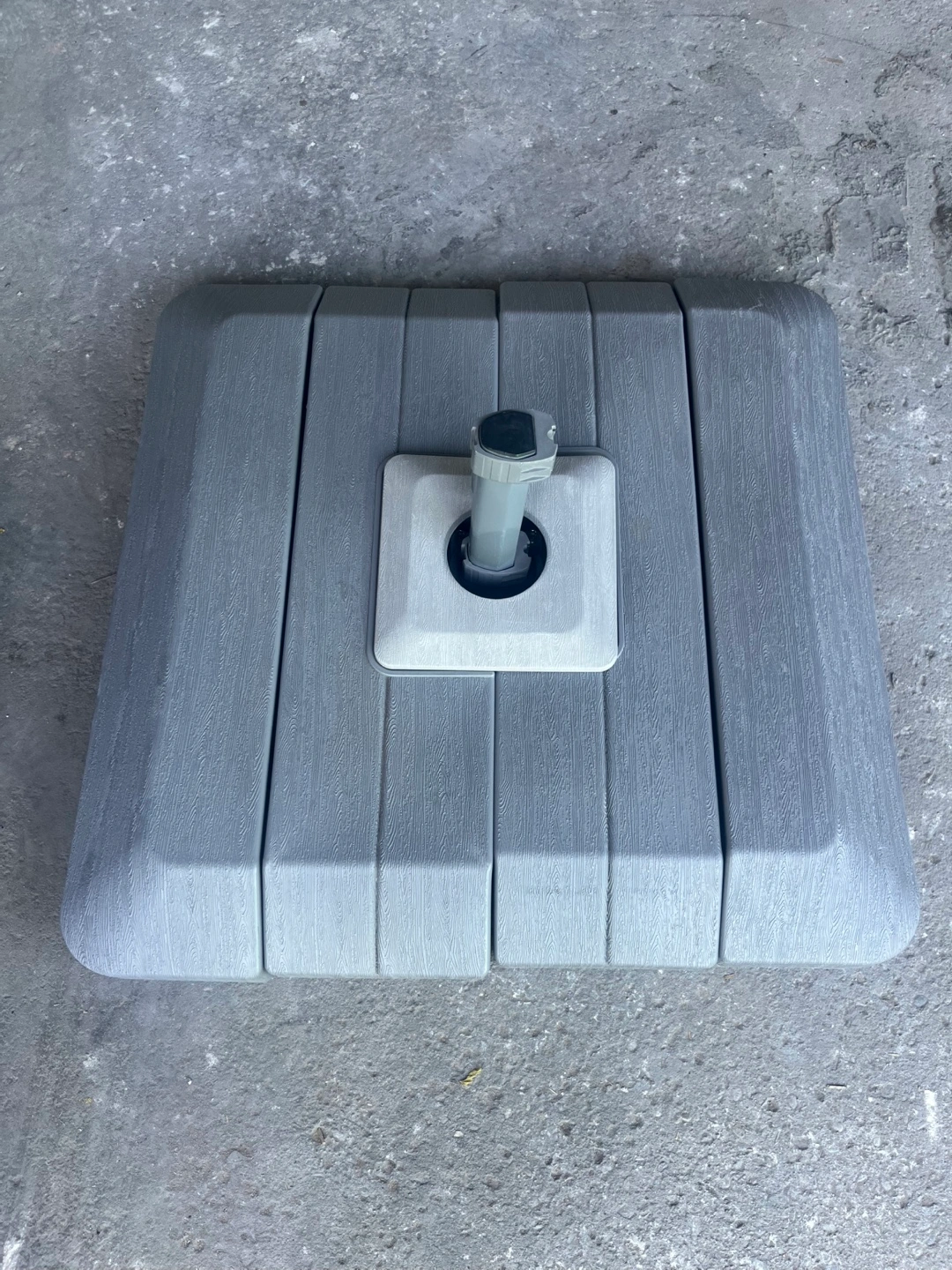 Selling a patio umbrella base in grey. It's in great condition and ready to hold your umbrella securely. Perfect for your backyard, deck, or patio’s It sells for over 300$